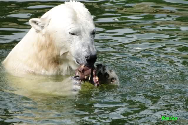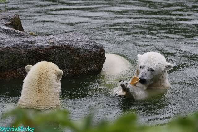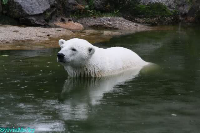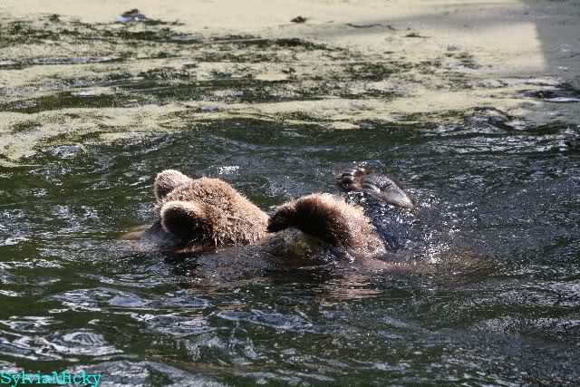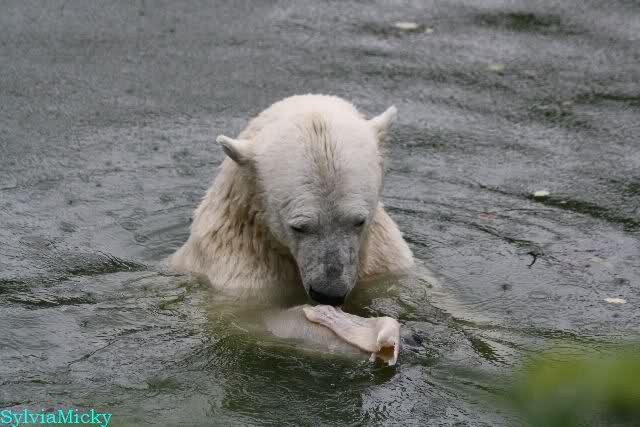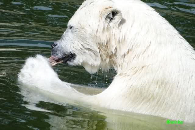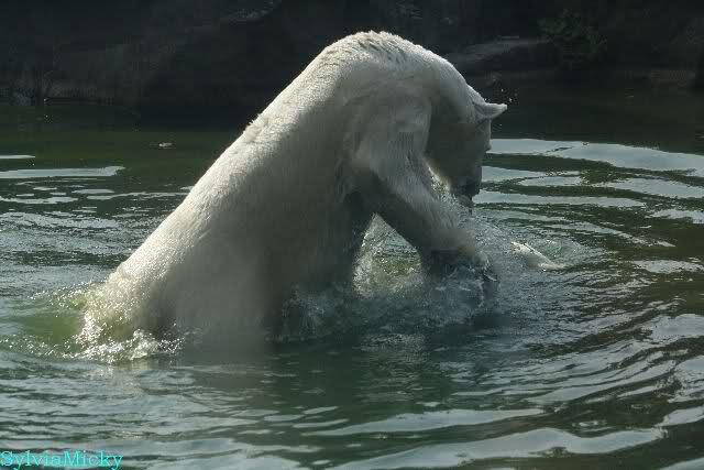 Danach haute sie mit der Pfote ständig aufs Wasser, daß es nur so spritzte.