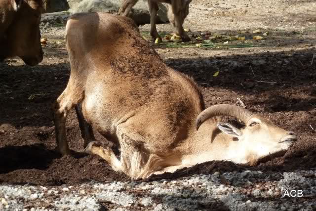 Nicht nur Knut wälzt sich gern im Sand. Auch Mähnenschafe finden das toll!