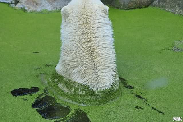 Tosca muß wohl in das grüne Gewässer eintauchen und...