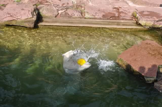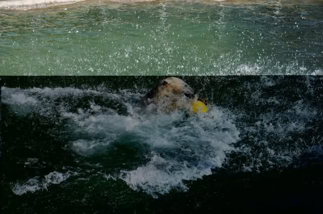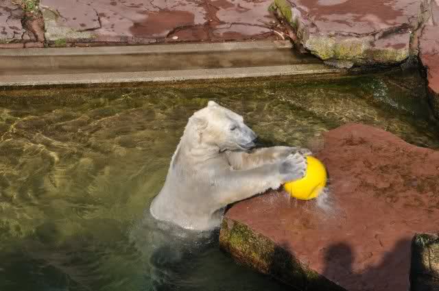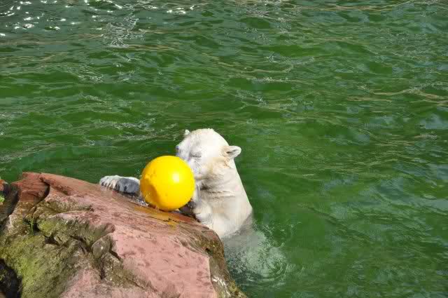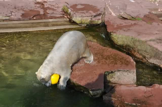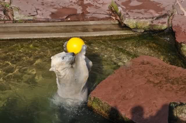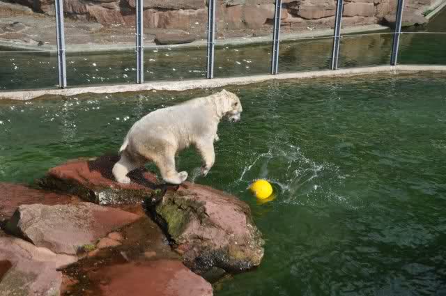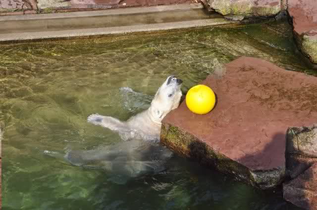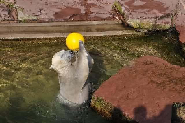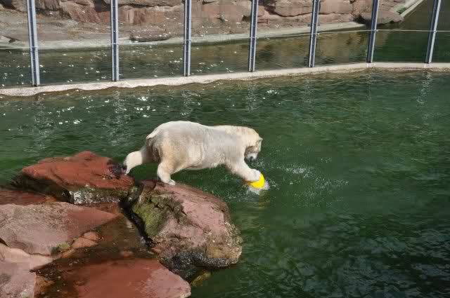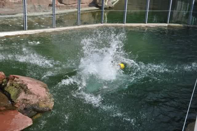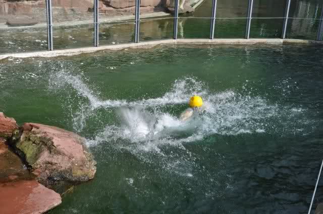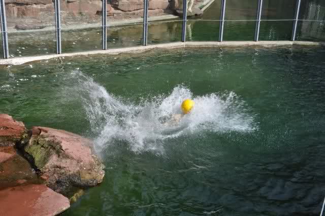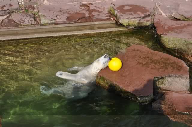 mit seiner Kugel ist er auch unter den Felsen öfters mal durchgetaucht