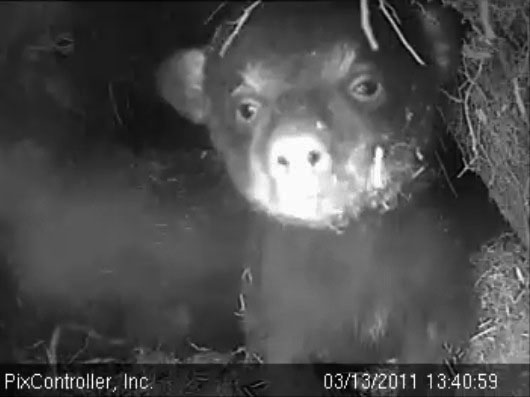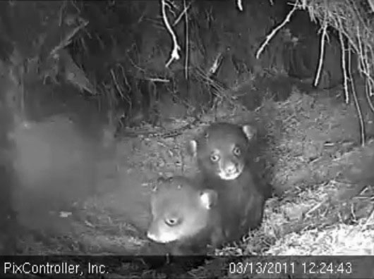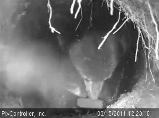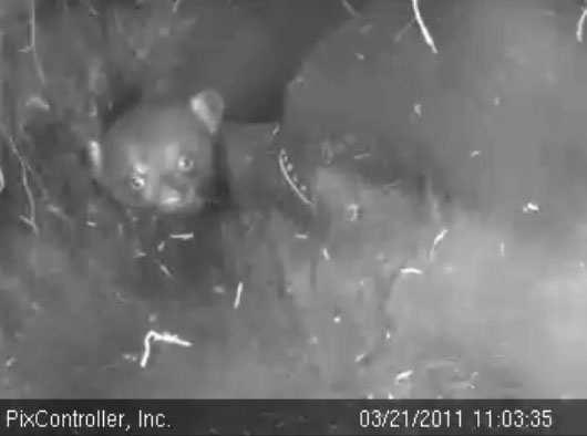Das warme Wetter soll die nächsten Tage anhalten, so werden wir wahrscheinlich mehr Ausflüge außerhalb der Höhle von Lily und ihrer Mannschaft sehen. Wir sind so dankbar für die Schwenk-Neige-Zoom-Kamera außerhalb der Höhle! Heute als wir sie anmachten waren wir überrascht Lily stehend zu sehen und die Kamera zu inspizieren. Die Kamera geht durch eine Positionierung Routine – und nachdem sie jetzt nach unten geschwenkt ist war alles was wir sehen konnten schwarzes Fell! Sie hat sie untersucht hat sie aber zum Glück in Takt gelassen. Doch nicht so die Höhlenkamera. Es gelang ihr daran einige Anpassungen zu machen!