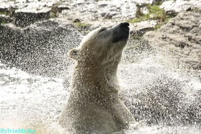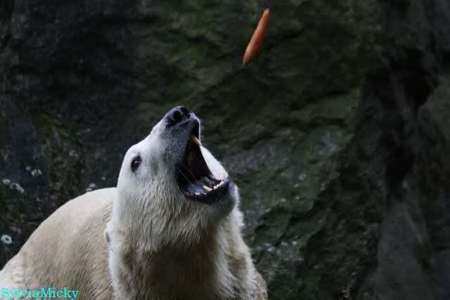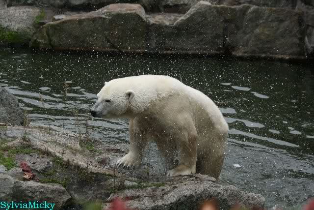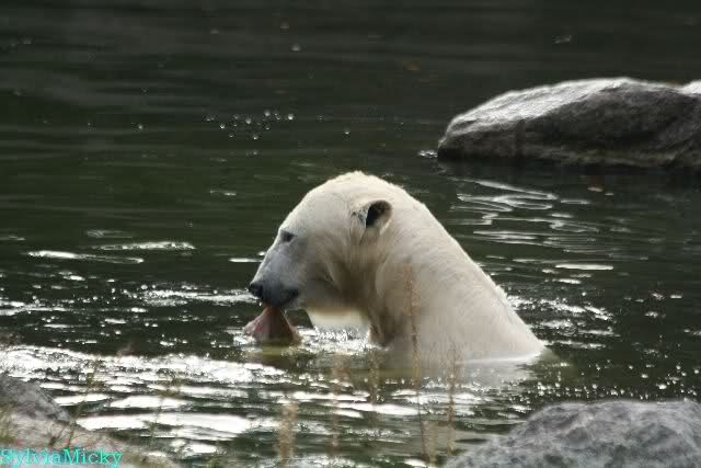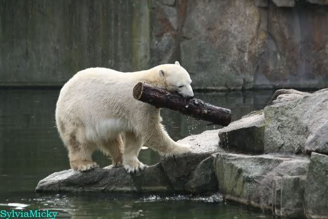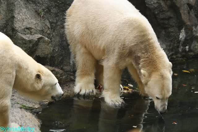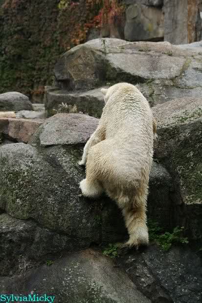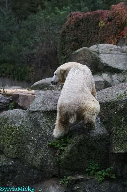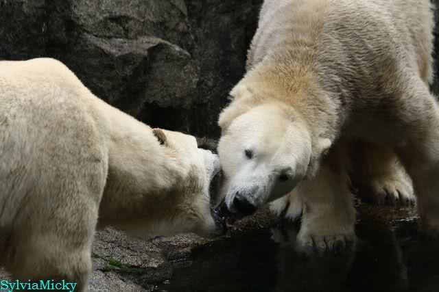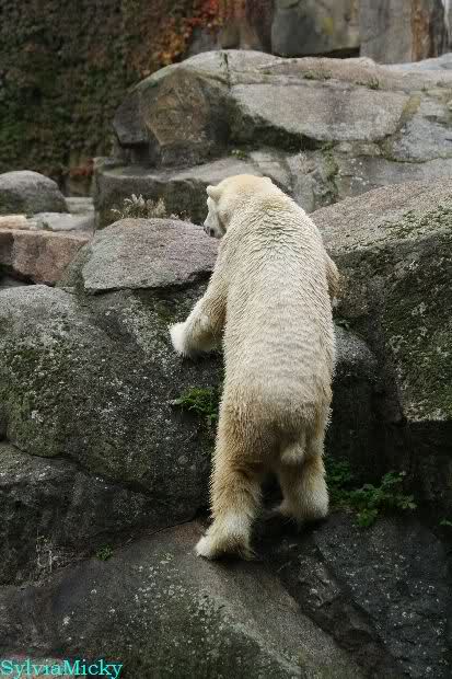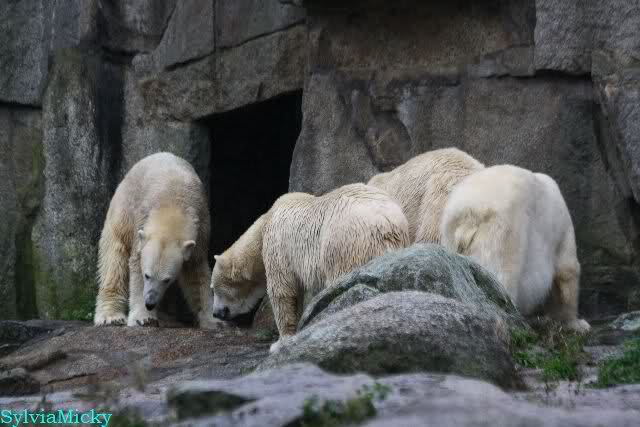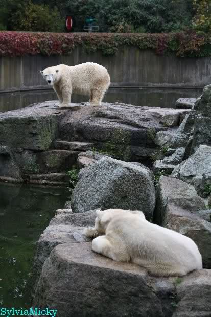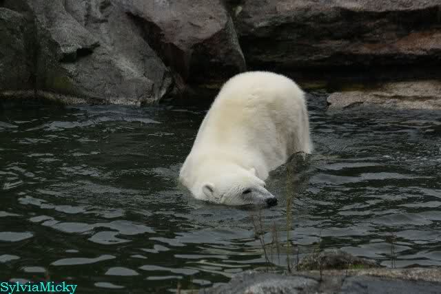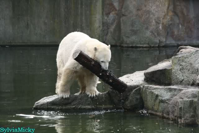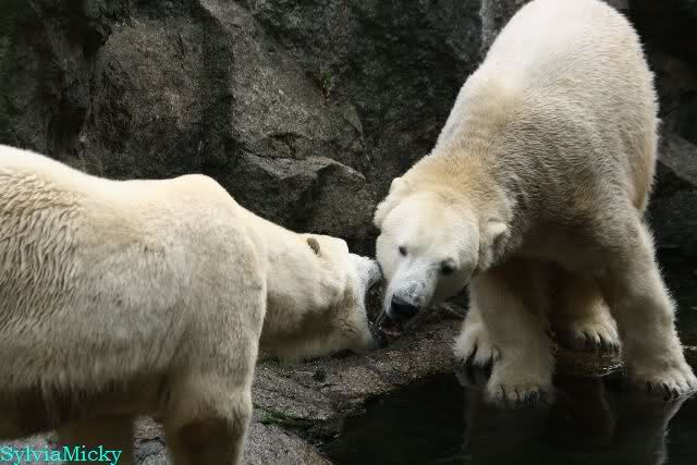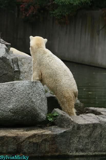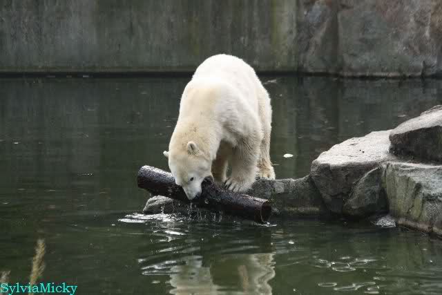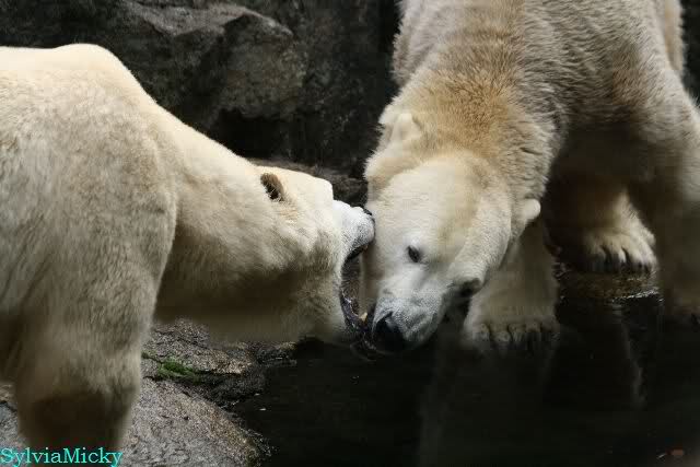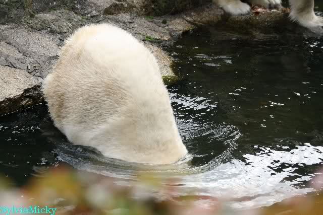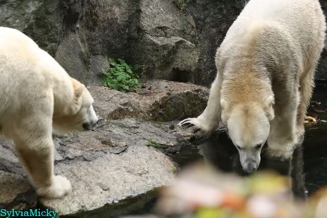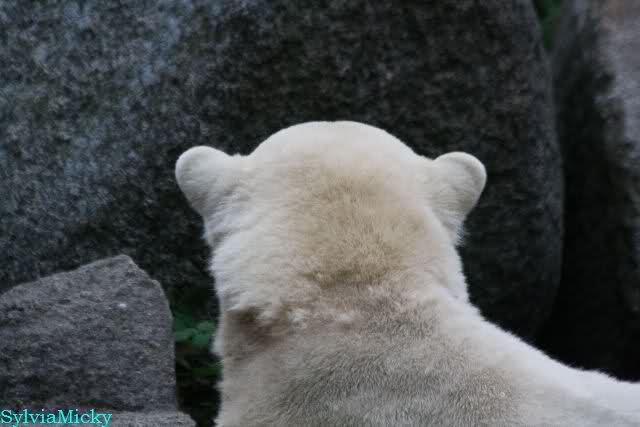 Hmmm, Action auf der Eisbärenanlage... Vielen Dank, Sylvia, für den heutigen Bericht und die Fotos vom Tage. Knut in Katis Höhle...langsam scheint sie es wohl zu dulden.