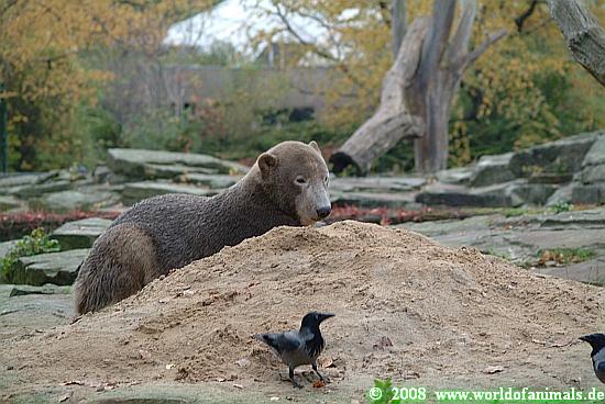 Bei den Malaienbären war leider niemand zu sehen. Aber die Höhle war offen, Bhumipol steckte missmutig den Kopf heraus. Aber es war wohl heute früh noch zu kalt für einen Tropenbären.