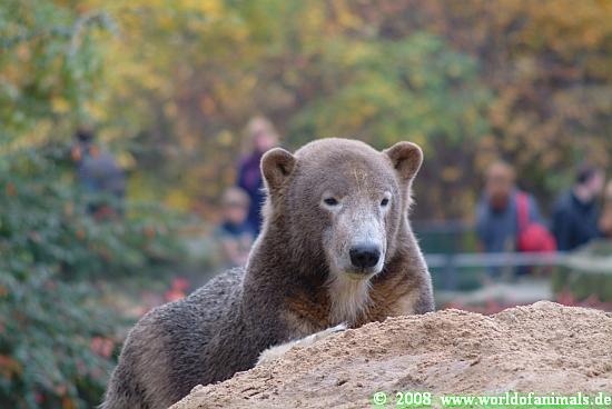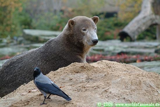 Ich drehte mich also um und ging zu den Malaienbären. Dabei kam ich an den Vikunjas vorbei. Das ist eine Kamelart, die vom Aussehen aber mehr an ein Lama erinnert. Dort gibt es ein Jungtier, das am 14. 10. 08 geboren wurde. Es ist ein ganz niedliches, kleines Ding und schon sehr gut zu Fuß. Vor der Vikunja-Anlage stand eine Mutter mit einem kleinen Kind, vielleicht drei Jahre alt. Das Kind zeigte auf das Jungtier und meinte: „Mama, guck mal, da ist ein Tier!“ Die Mutter darauf hin trocken: „Soll im Zoo vorkommen.“