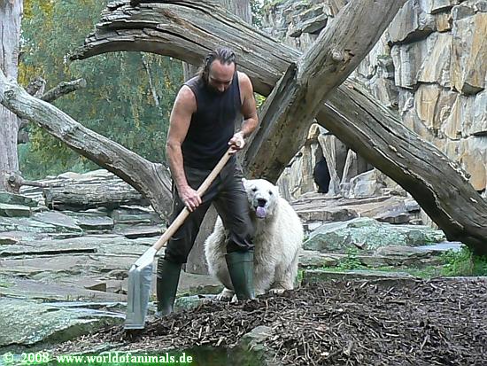 Gegenüber dem Eisbärenrevier sind ja die Volieren und einer der Vögel scheint mich zu kennen. Ich habe ihn noch nie gesehen, aber er ruft manchmal „Yeo! Yeo!“ Ich weiß ja nicht, was man ihm erzählt hat…