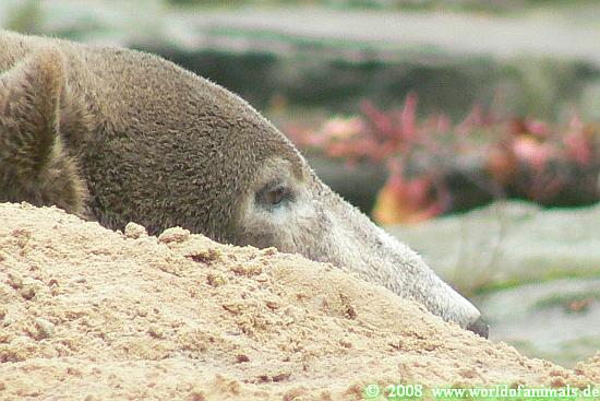Nach der Malaienbären-Fütterung ging ich noch mal zu Knut, der immer noch hinterm Sandhaufen lag und schlief.