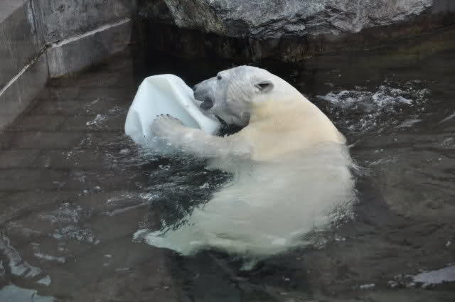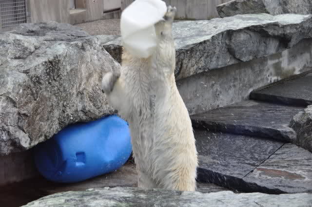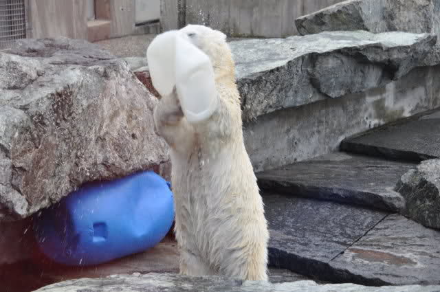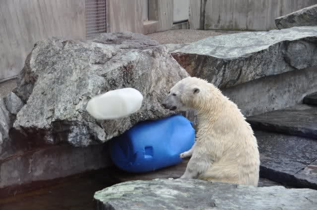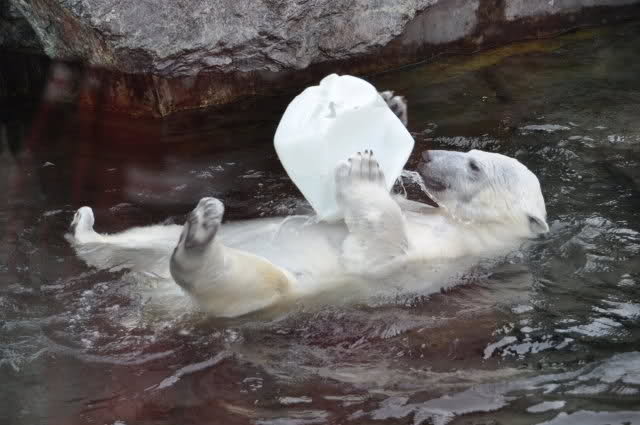Uli, vielen Dank für die wunderschönen Fotos von Wilbär (und natürlich auch den anderen Bildern). Es ist einfach schön, einen Eisbärjungen so verspielt zu sehen. Mit einem einfachen Kanister kann man ihn so herrlich beschäftigen. Er bevorzugt also die Rückenlage, köstlich. Schwimmt er tatsächlich so, oder liegt er auf einem Felsen im Wasser ? Man kann sich an diesen Fotos nicht satt sehen.