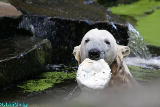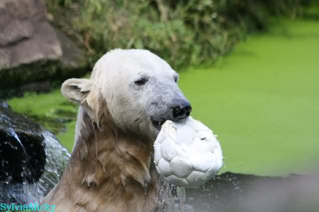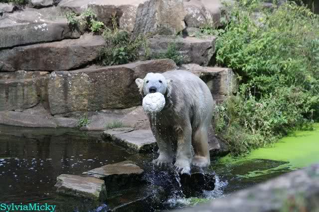 Knut spielte sehr zur Freude der Besucher mit ihnen Ball. Er war wieder in seinem Element.
