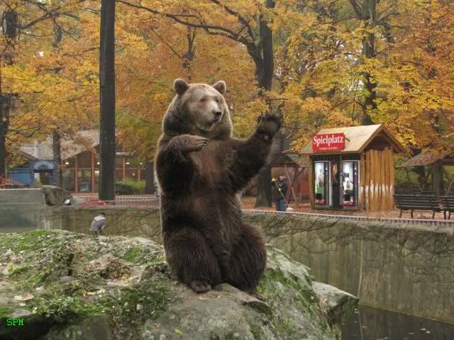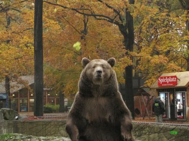 Übrigens, die Braunbären waren heute wieder nicht draussen. Man hörte sie lautstark an der Käfigtür bummern.