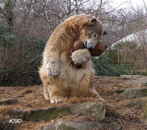 Karin_Tempel, mit diesen Enrichment-Programmen beschäftigen wir uns seit langer Zeit und haben uns schon zu den Zeiten, als wir um Spielzeug für Knut baten, darauf bezogen. Wieviel davon im Zoo angewandt wird, kann ich nicht sagen. Allerdings konnte man bei TD’s Raufen mit Knut deutlich sehen, dass er unseren Bären genau in Augenschein nahm. Also spielen mit Methode.