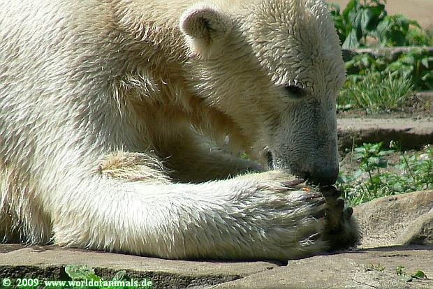 ...Knut ist der letzte von mehreren Eisbär-Lieblingen in deutschen Zoos, der noch allein lebt. Flocke in Nürnberg hat einen russischen Partner, Lara in Gelsenkirchen ist mit Bill aus Brünn zusammen, Wilbär aus der Stuttgarter Wilhelma wird Schwede mit einem niederländischen Eisbär-Meisje, und für die neue Anlage in Hannover wurde ein Wiener Pärchen gewonnen. Ein Gerichtsprozess war in keinem Fall nötig.