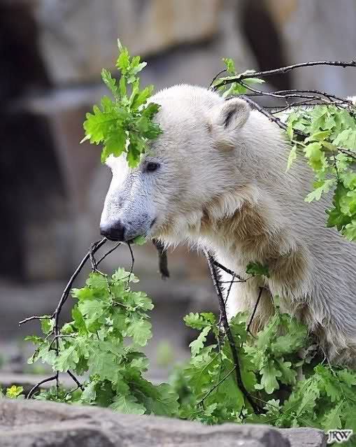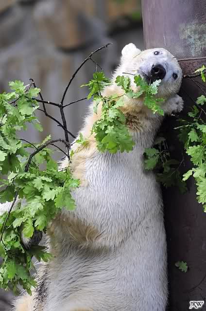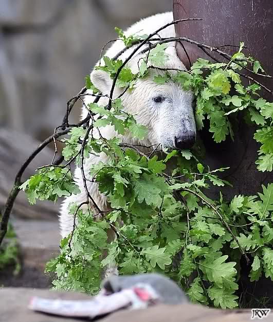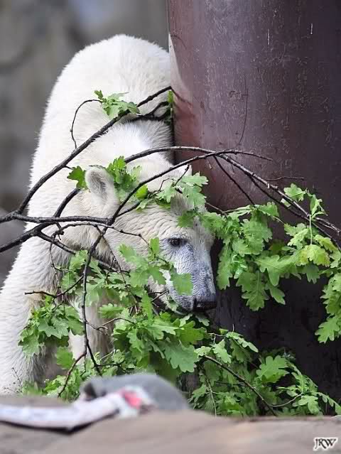 Von der neuen Pflegerin gab es auch einen neuen Zweig für Knut und die anderen Bären