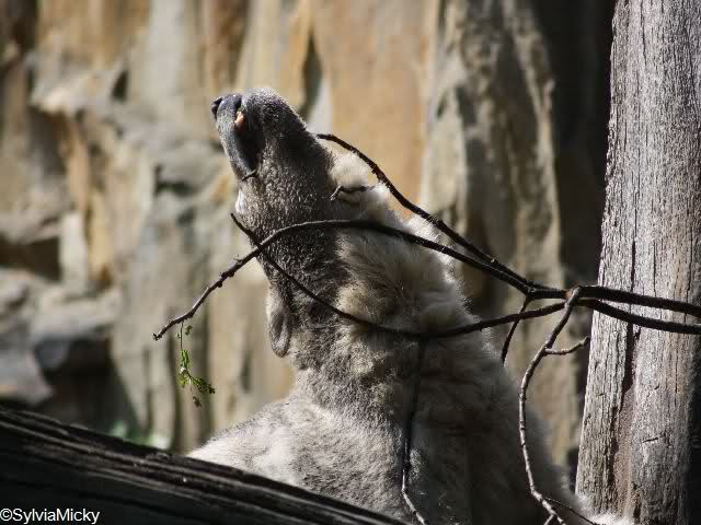 Nach einer längeren Pause ging ich zur Nasenbärenfütterung. Die machte heute wieder die junge Pflegerin, die zurzeit im Bärenrevier arbeitet. Sie machte die Nasenbärenfütterung sehr schön. Mir fiel heute auf, dass die Nasenbären die weißen Mäuse jetzt nicht sofort verspeisen, sondern erst mal verstecken und dann gucken, was noch so Interessantes in der Kiste ist.