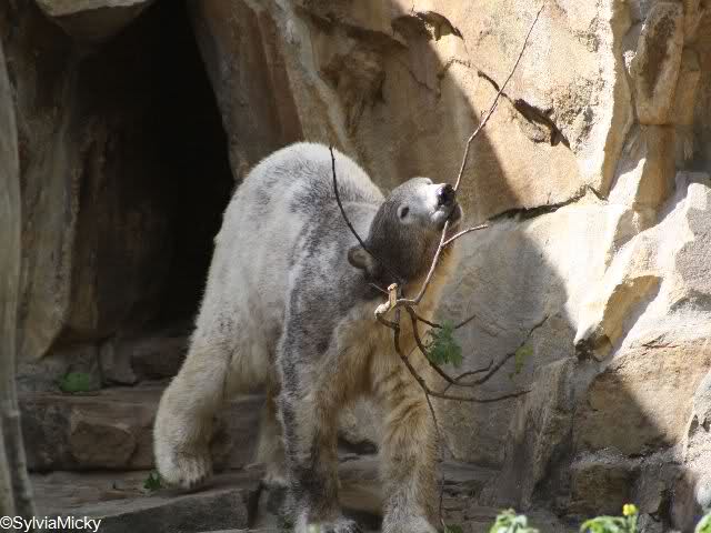 Gegen Nachmittag nahm Knut den Zweig und wollte in die Höhle. Die war noch zu. Also brachte er ihn wieder zurück auf die Anlage.