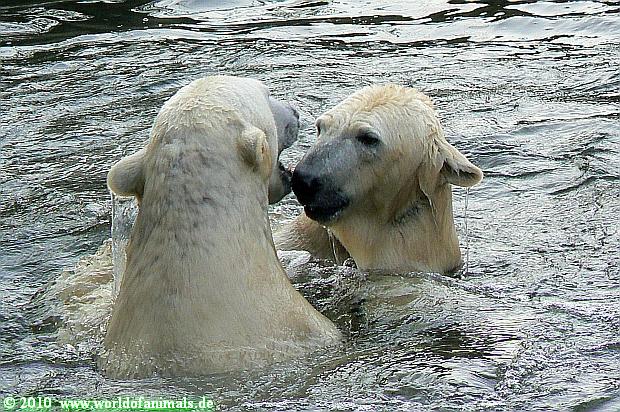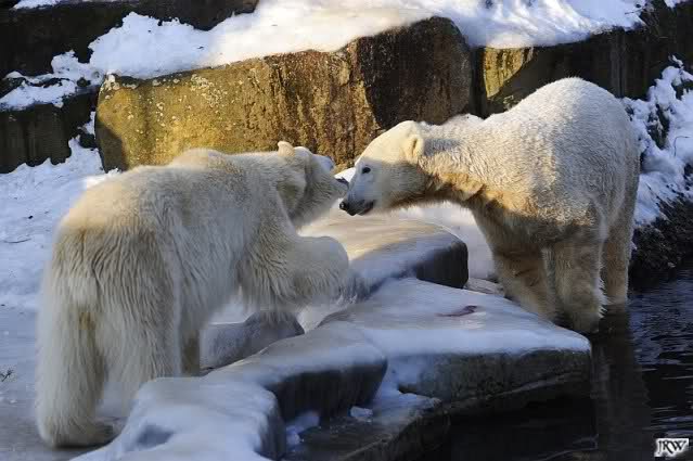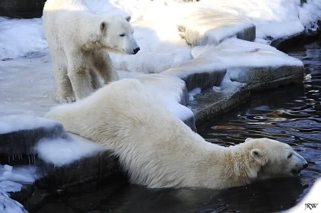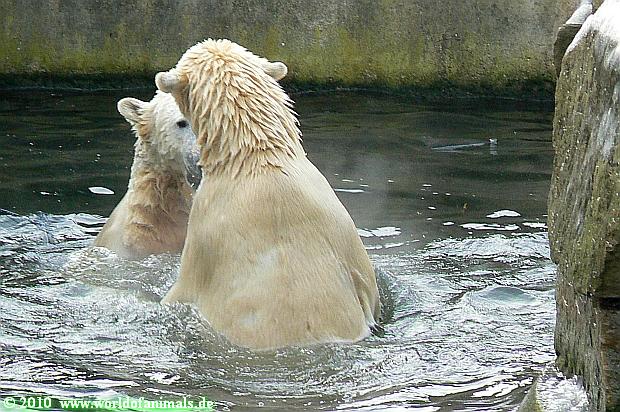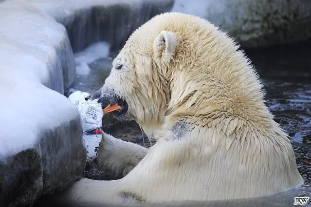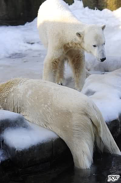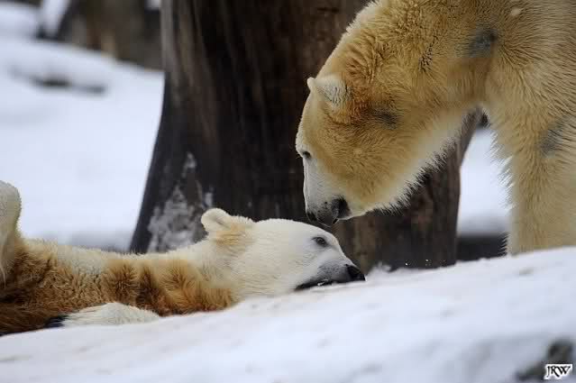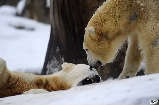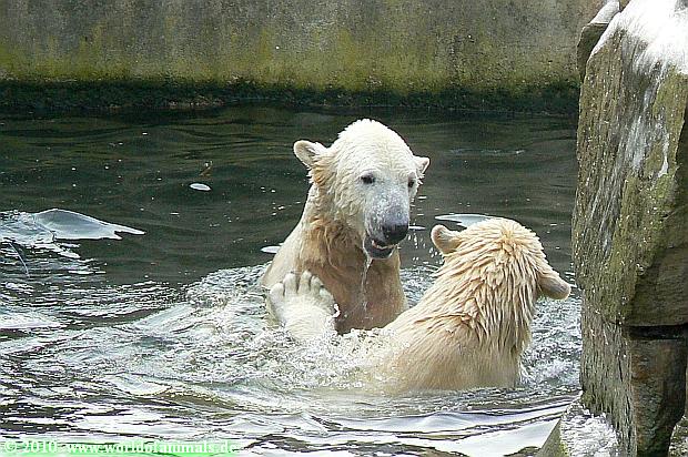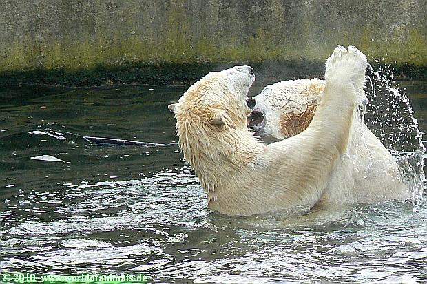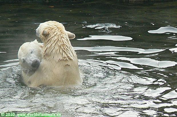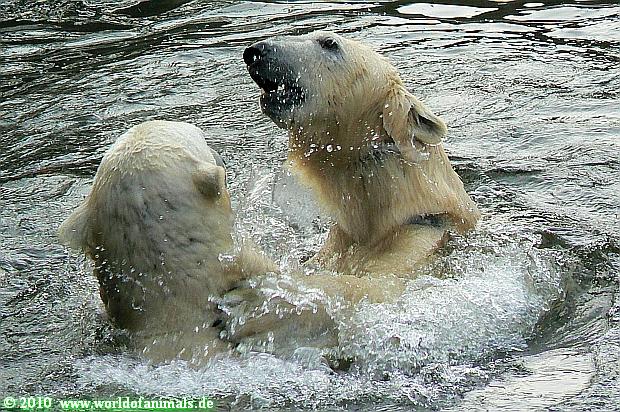 Ich poste gleich eine weitere Serie der beiden im Wasser spielenden Eisbärenkids. Fotos vom Sonntag Nachmittag.