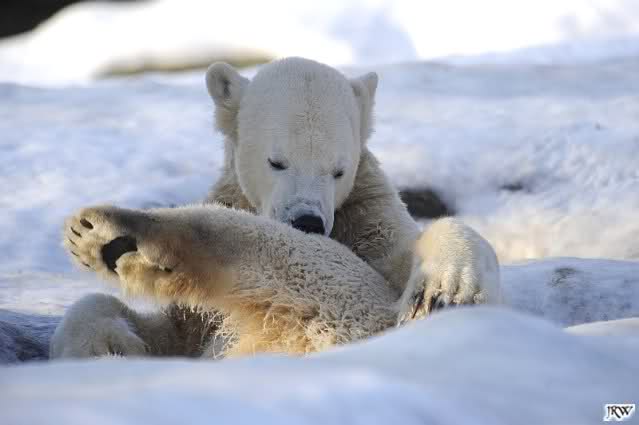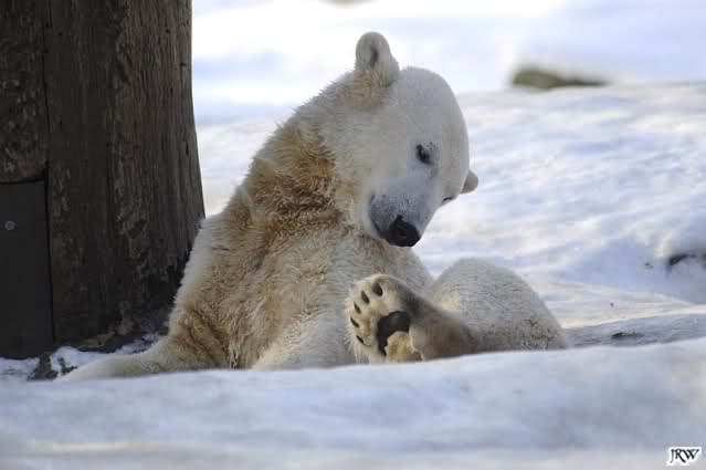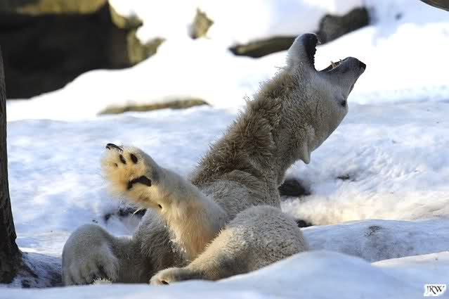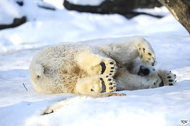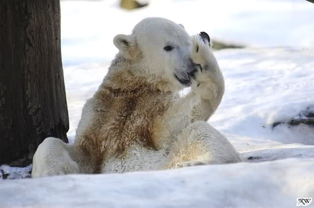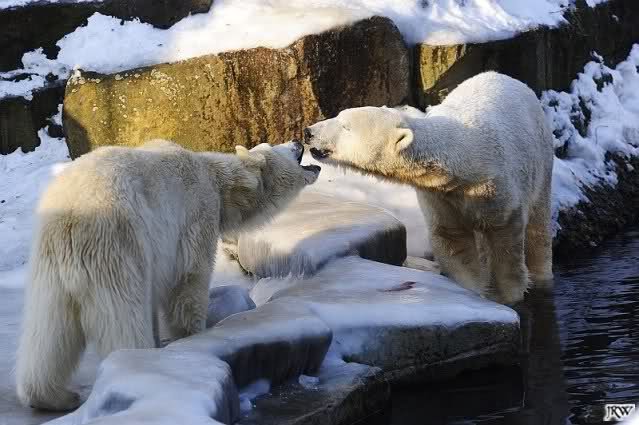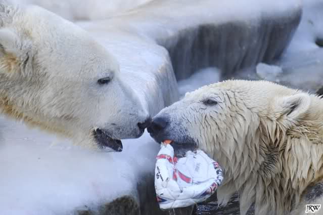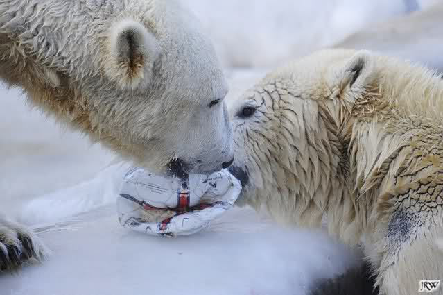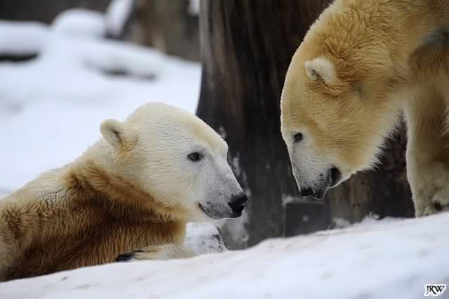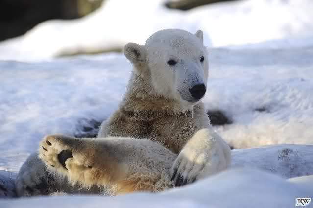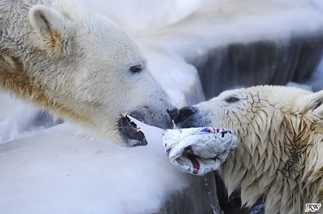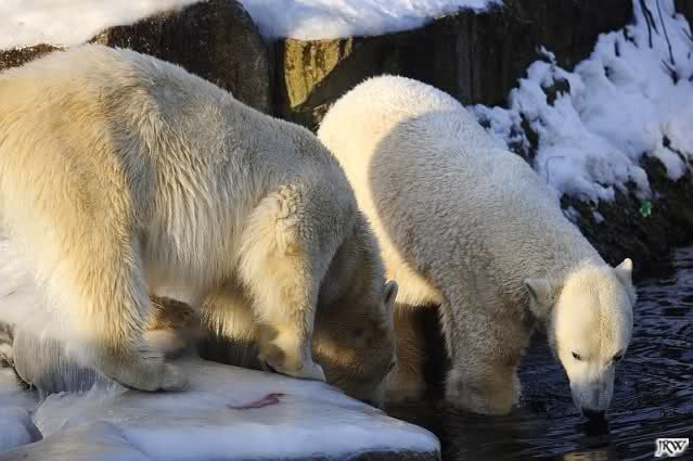 Ich poste gleich eine weitere Serie der beiden im Wasser spielenden Eisbärenkids. Fotos vom Sonntag Nachmittag.