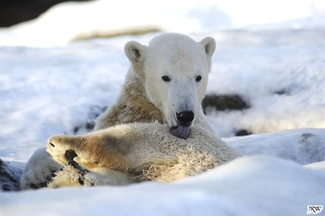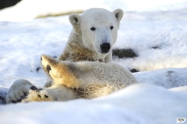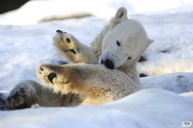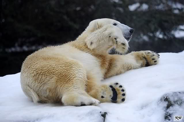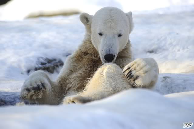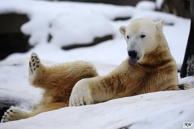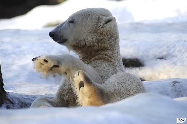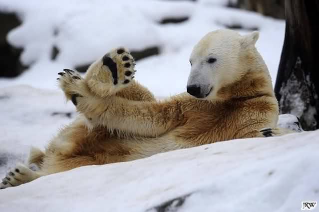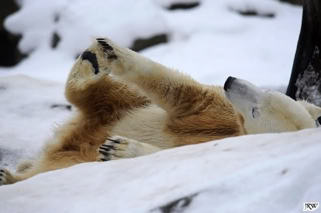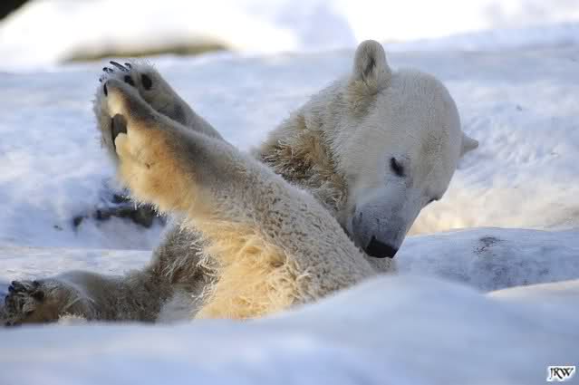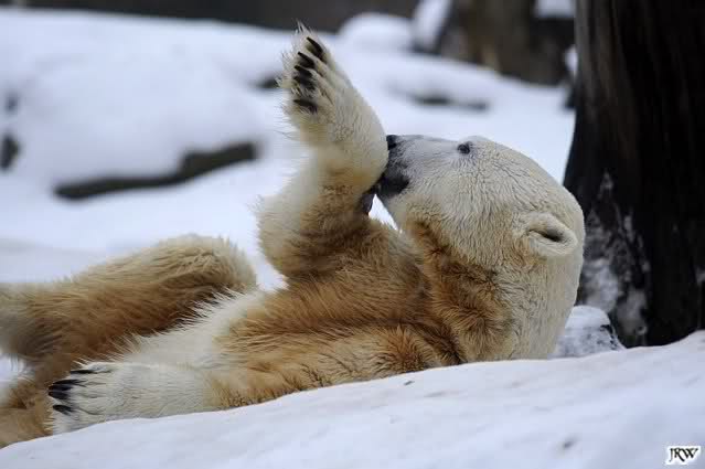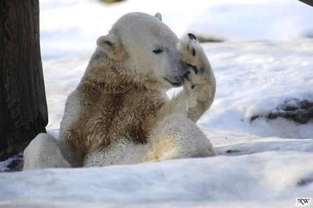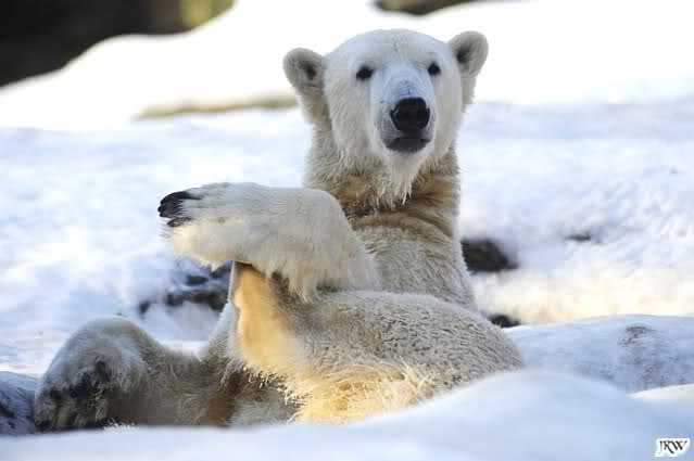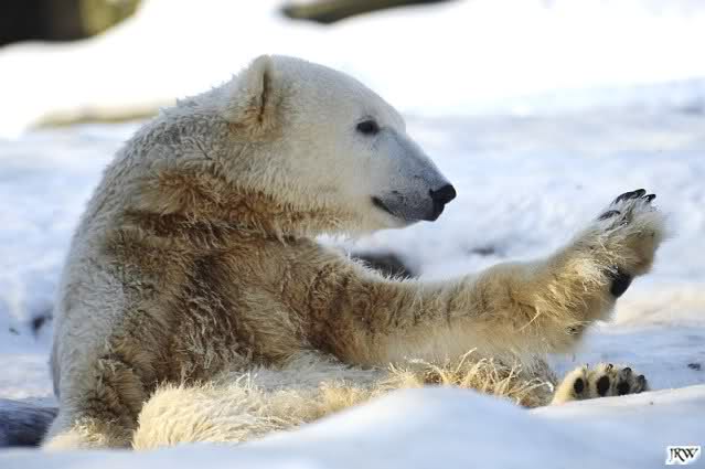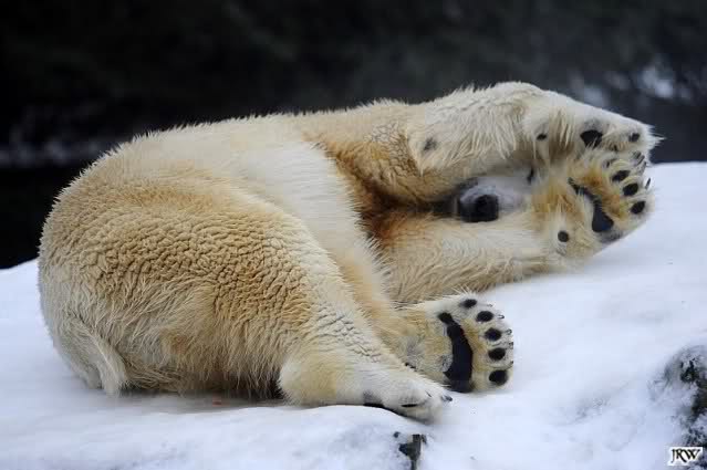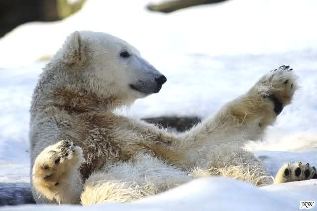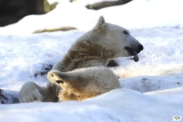 ... Knuti hat weder gefriemelt noch die Beine sortiert, ihm war einfach nur kalt und er hat sich die Tatzen gewärmt.