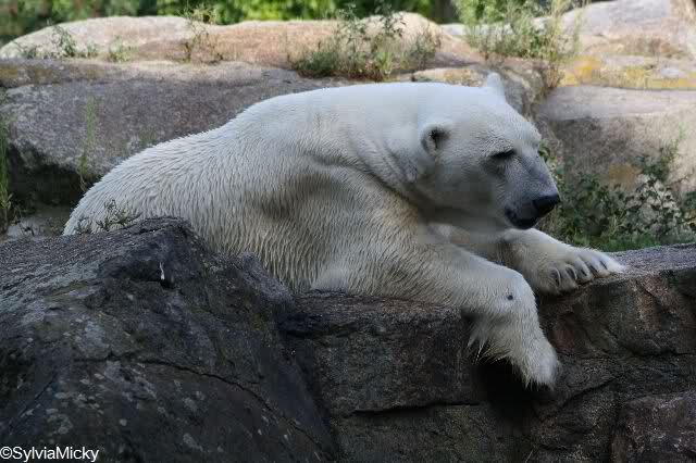 Was der Knut da drüben alles anstellt. Selbst mit nem Kinderschuh spielt der.