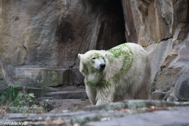 Kaum im Zoo angekommen, trafen wir zwei liiiebe Knutfreunde. Sie begrüßten uns strahlend und sagten wir könnten gleich wieder gehen, denn alles sei schon gelaufen! Knut und Gianna hätten morgens mindestens 45 Minuten sooooo süß gespielt. Nun würden sie beide nur herumliegen und warten, dass es bald mal Futter gibt. Tolle Begrüßung! Wir gingen natürlich trotzdem zu Knut.