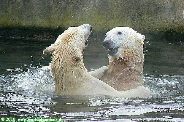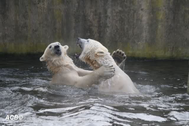 Sie rutschte gleich zum Wasser hinunter, und dann sahen die frierenden Besucher zwei Bären außer Rand und Band.