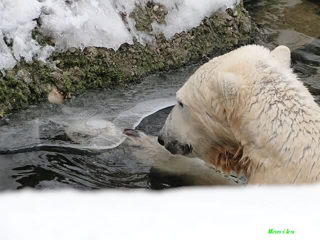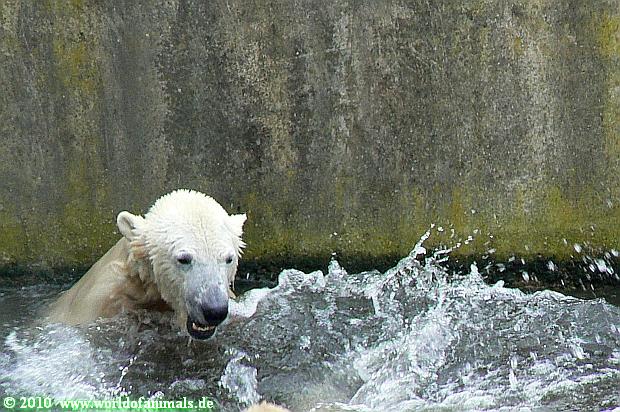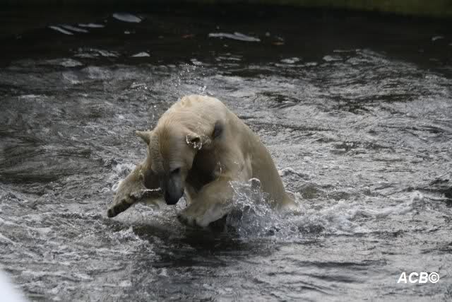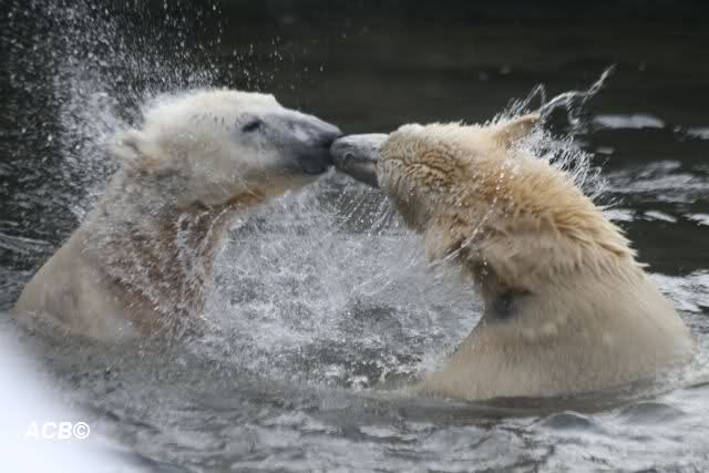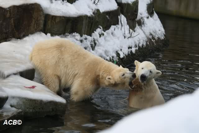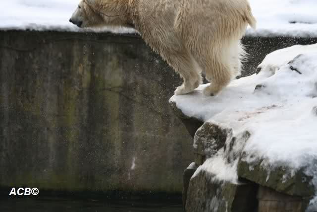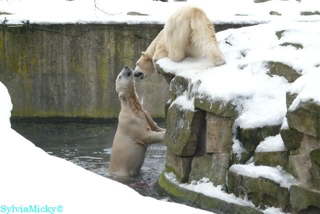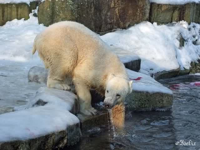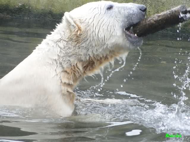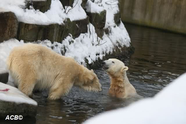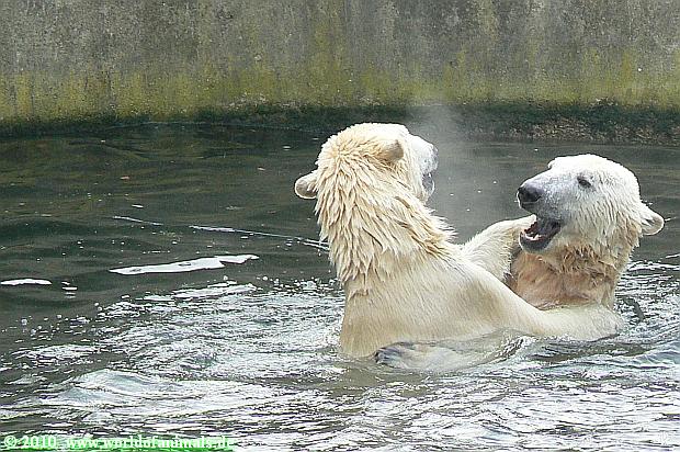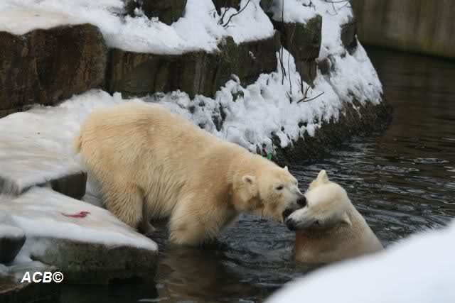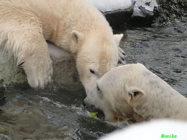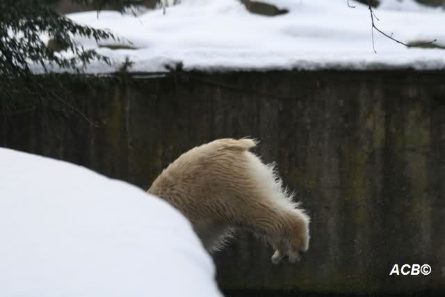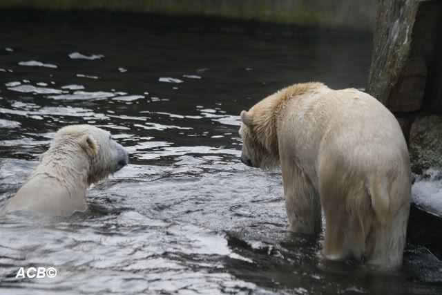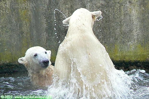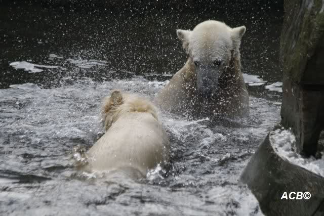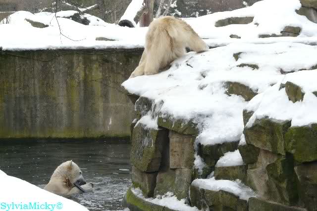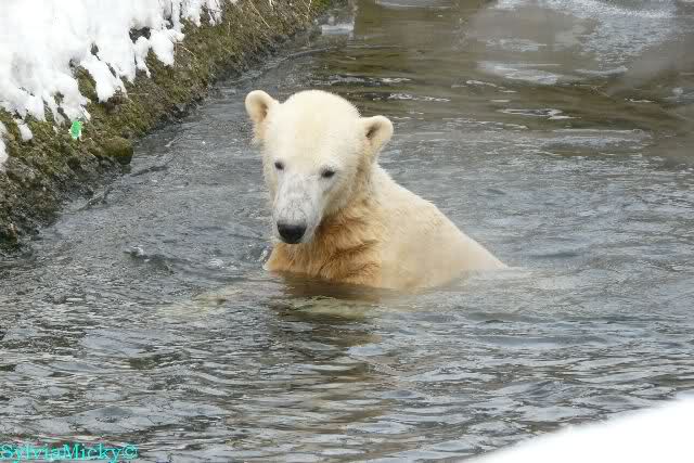 Good evening to you all Knut & Giovanna friends around the world at Sunday evening from Knut City. It was a very cold day again and so I want to thank our fotographers for their brand new pictures from our polar bear kids. The bears did play very crazy in the water at afternoon.