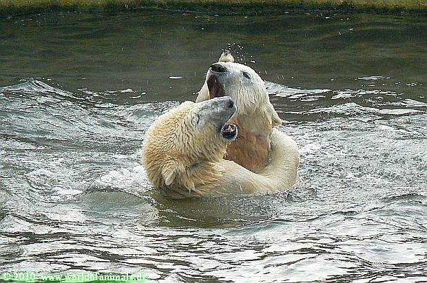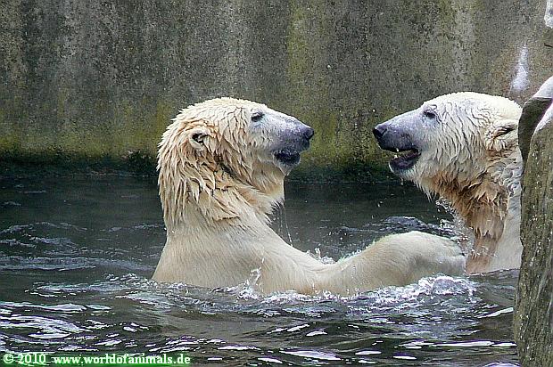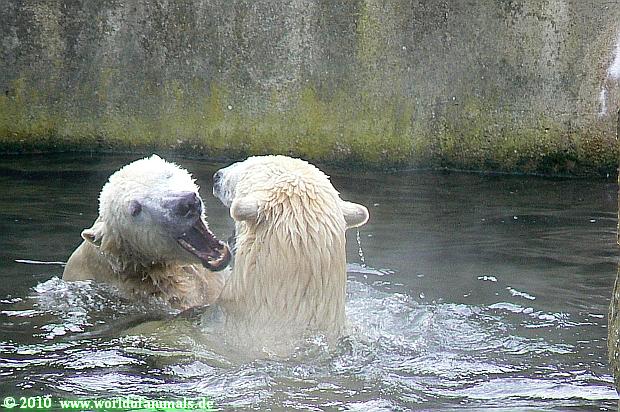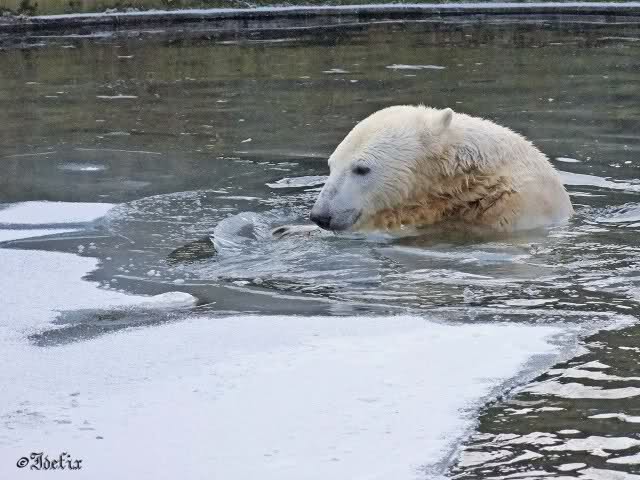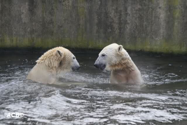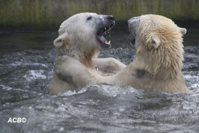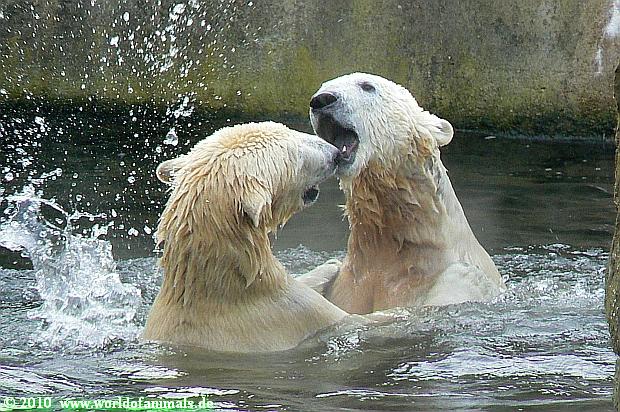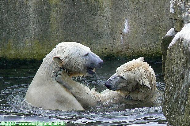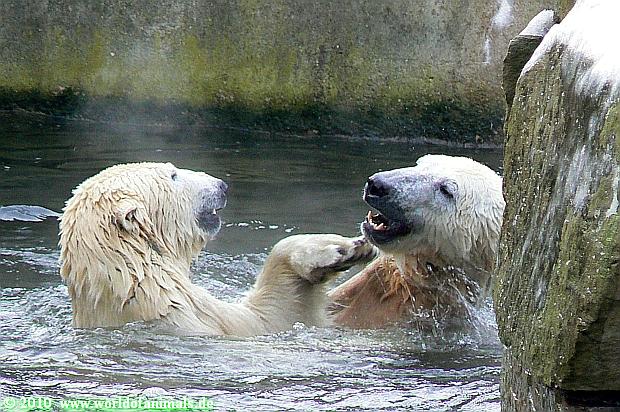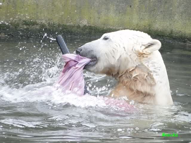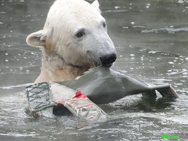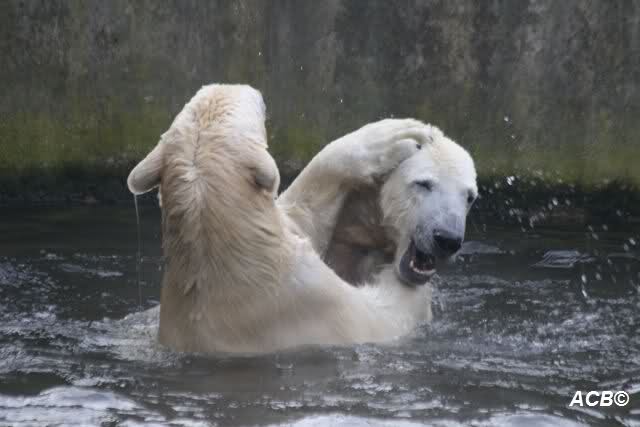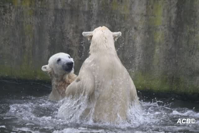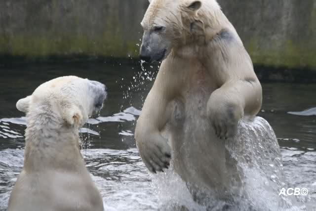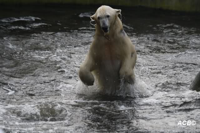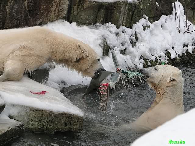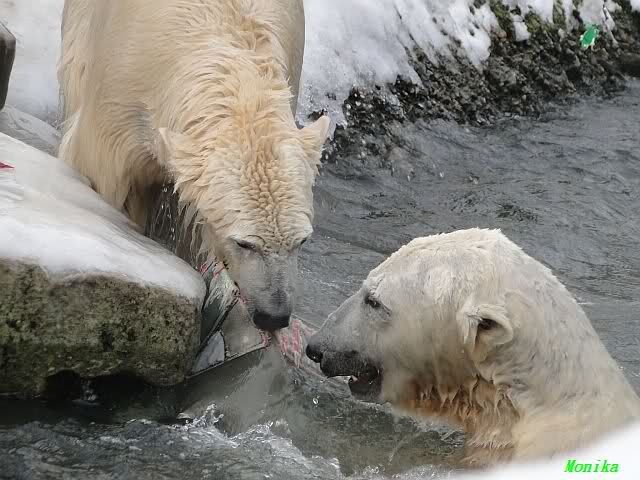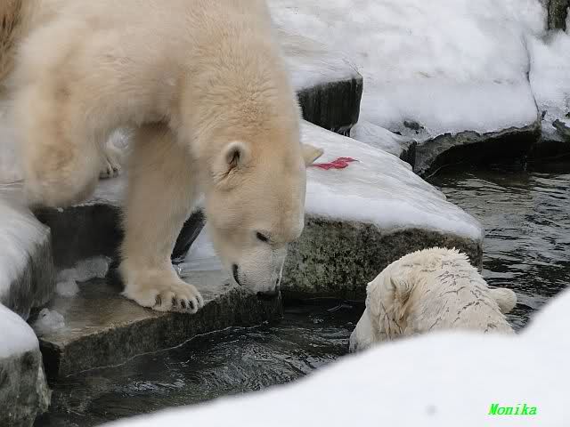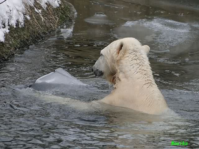 Good evening to you all Knut & Giovanna friends around the world at Sunday evening from Knut City. It was a very cold day again and so I want to thank our fotographers for their brand new pictures from our polar bear kids. The bears did play very crazy in the water at afternoon.