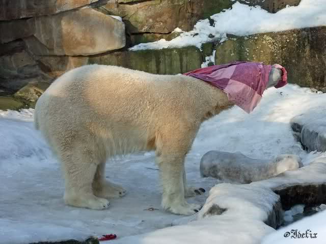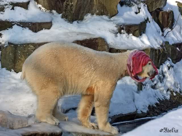 Ja Freunde, bei dieser Kälte brauch auch ein Eisbär einen Kopfschutz