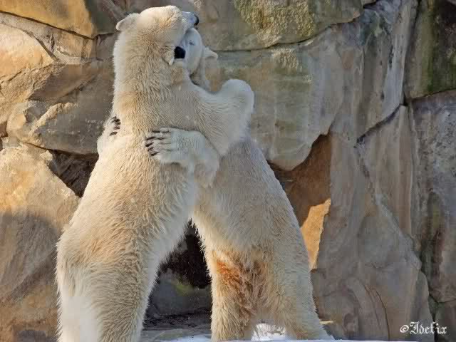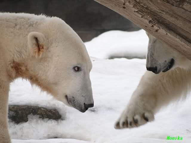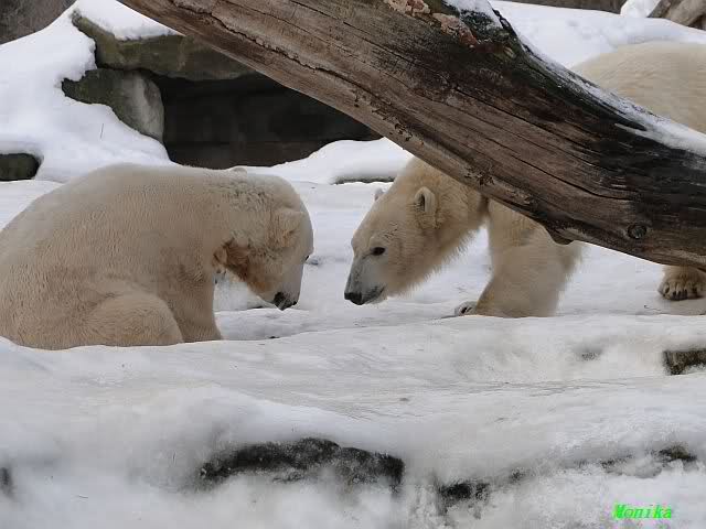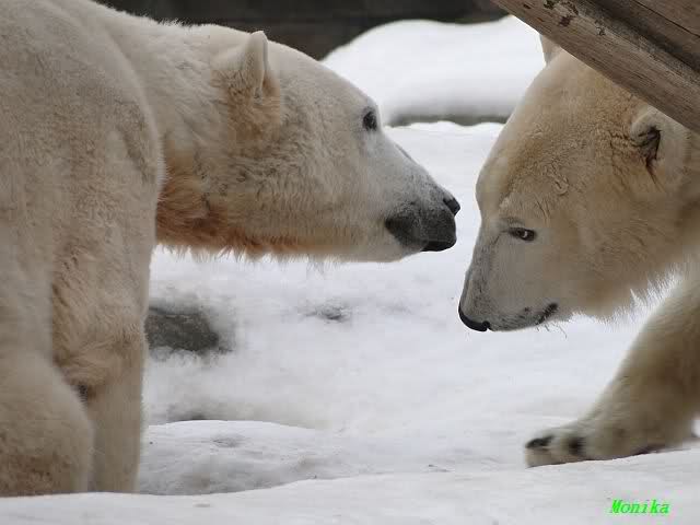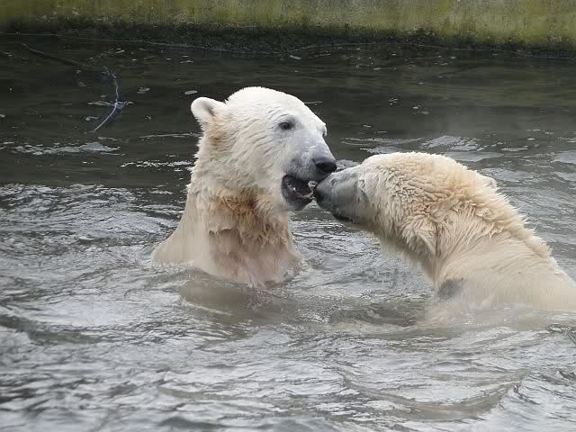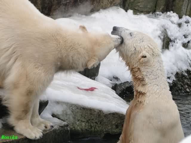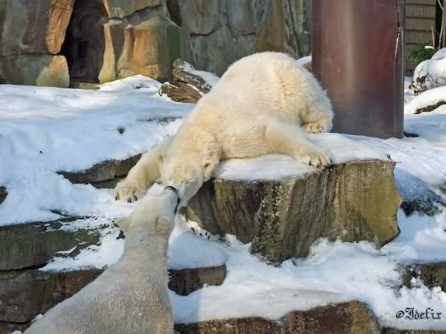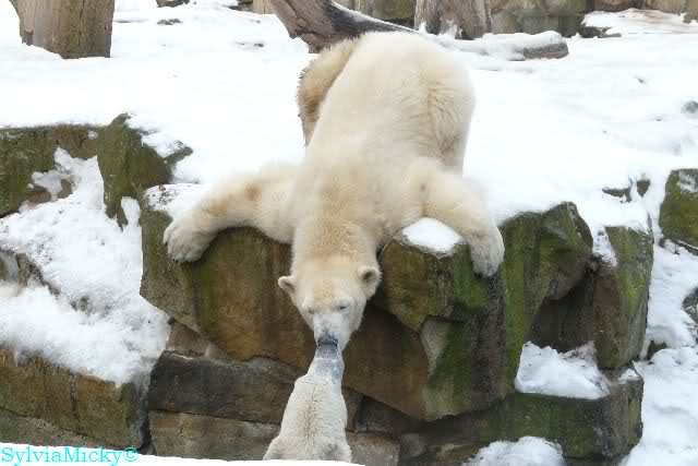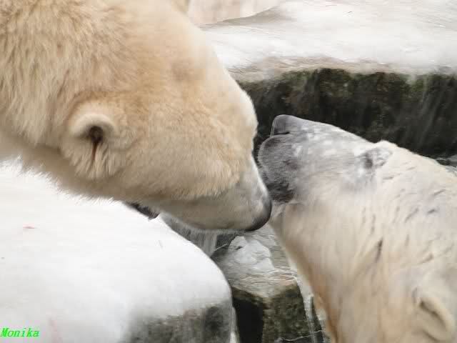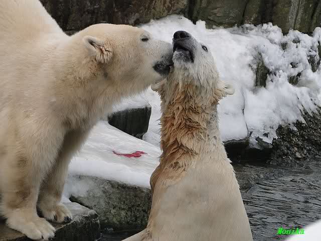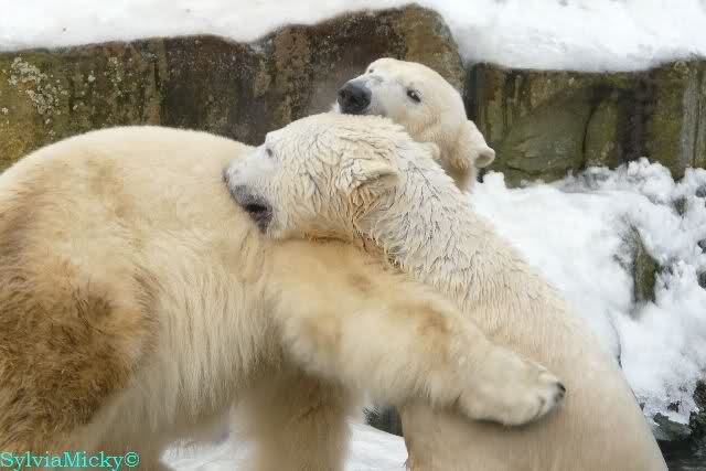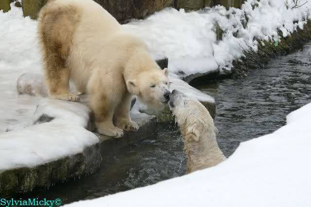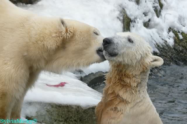 Für eine wie mich, die in der "Verbannung" aushalten muss, ist das natürlich wunderbar. Ach, diese Augen unserer beiden Eisbären-Teenager! Ja, ja, die erste Liebe.