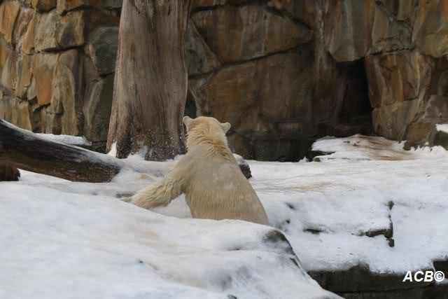 An einem sehr eisigen Vormittag bei -15° und gefühlten -30° fühlten sich die Beiden eisbärwohl. Es waren trotz der Temperaturen eine ganze Menge Besucher bei Knut.
