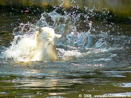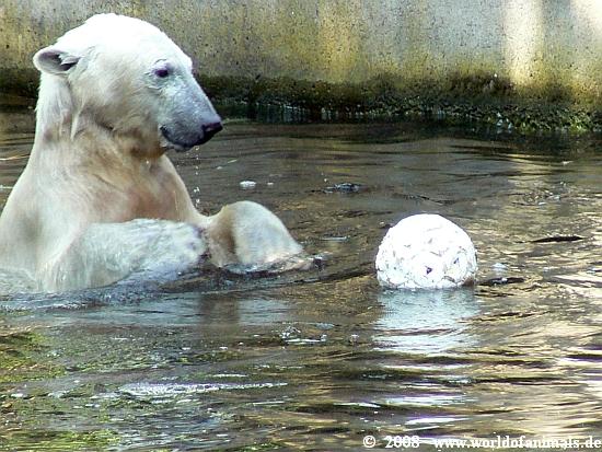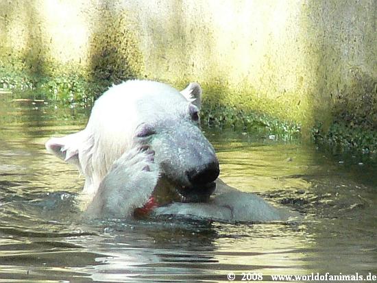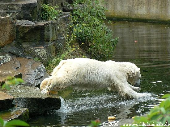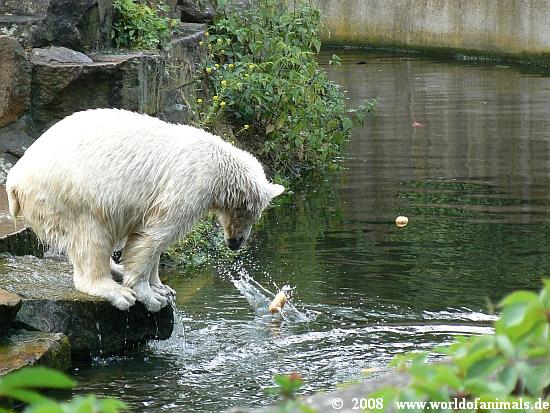 it was a hot and humid sunday. But Knut was in a very good mood and was playing in water many hours. He got his food from Markus Roebke, not so much today.