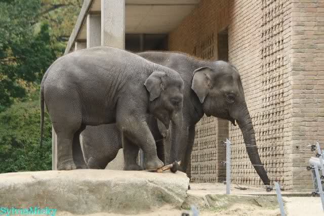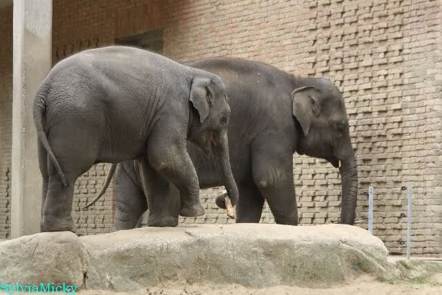 Die Elefanten hatten Beschäftigungsstöcklein. Shaina Pali warf ihn immer gegen die Wand, hob ihn auf, warf ihn gegen die Wand usw. usw. Wie schön