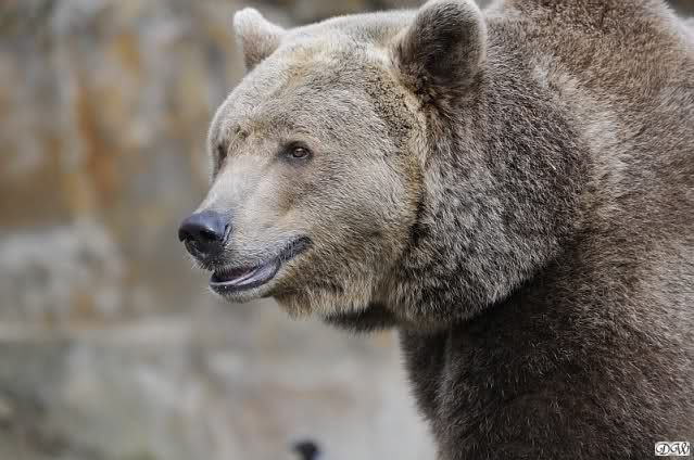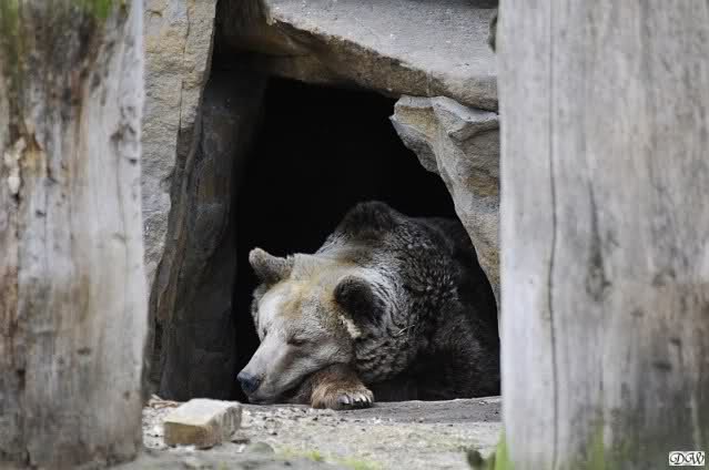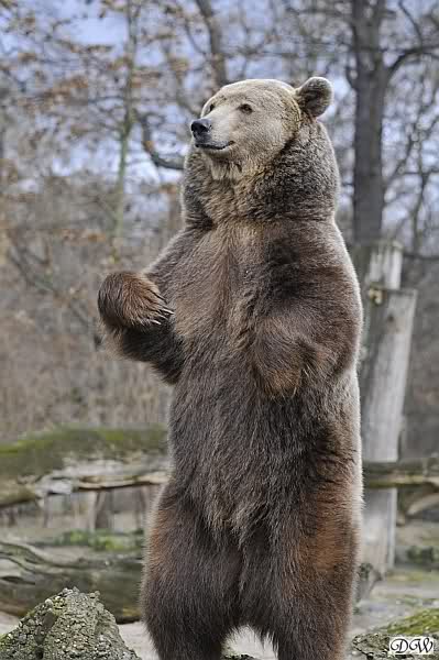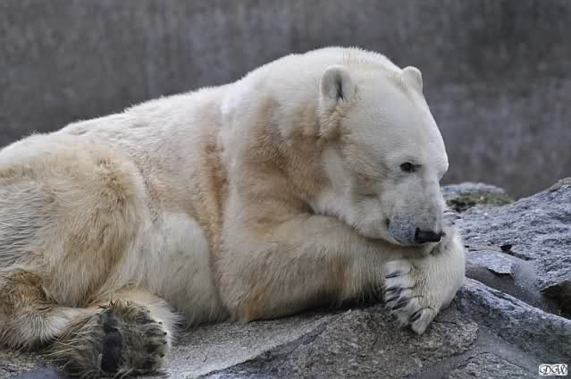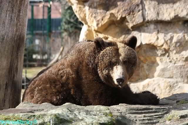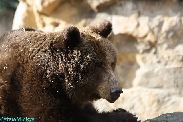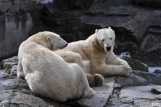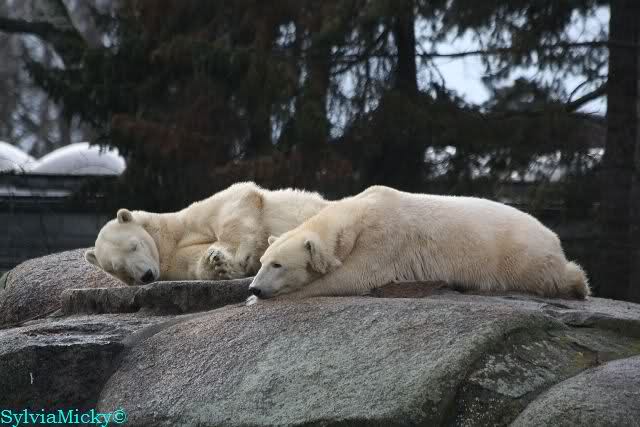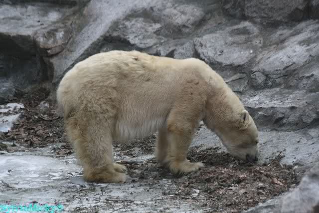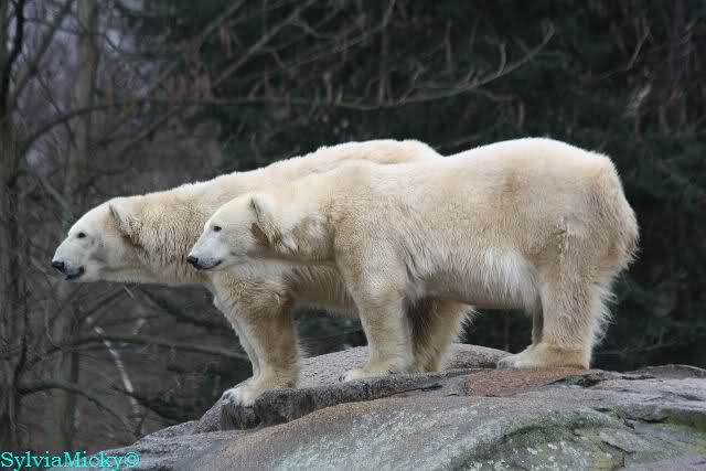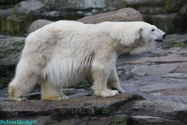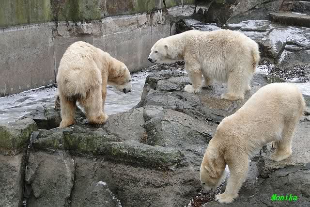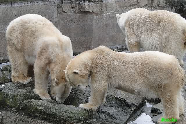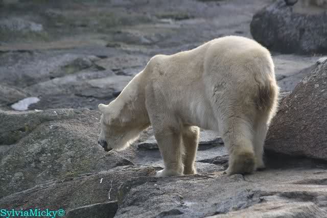 Als ich nach Knuts Fütterung bei den Großen stand, standen Tosca und Nancy auf dem Felsen und Katjuscha lief über die Anlage.