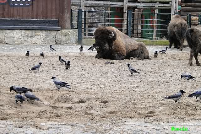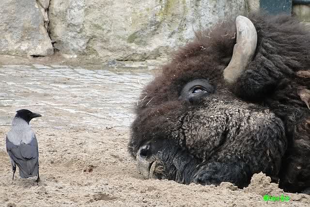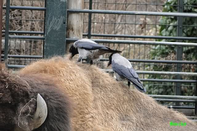 Es waren heute sehr viele Krähen bei den Bison`s. Sie zupften ihnen das Fell aus um es dann zu fressen.