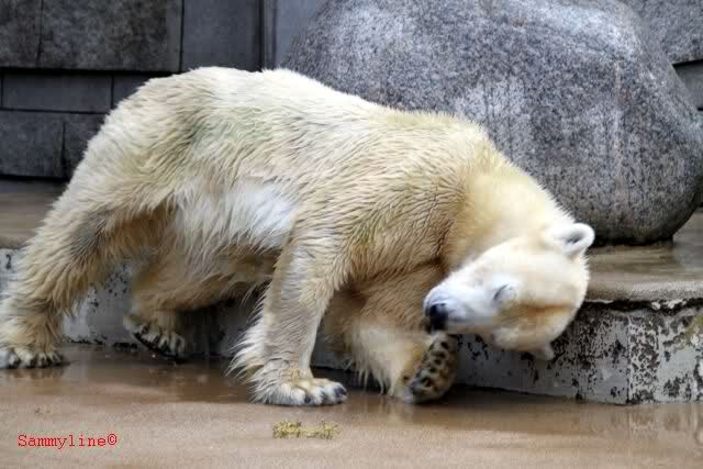 Da wird dauernd vor die Scheibe geklopft und dumme Sprüch zu mir und Vilma gerufen. Beispiele. Letzten Sonntag rief so ein alter Kerl: " Spring doch ins Wasser du dumme Sau". Nee, was ist der ungebildet. Ich bin ein deutscher Eisbär und kein Schwein. Ein Dauerbrenner ist auch der Spruch: "Beweg´ dich mal du alter Sack." Wenn ich dann die Gestalten sehe, die das rufen stelle ich immer wieder fest, dass ich mit meinen knackigen 17 Jahren viel jünger bin wie die und mit meinen Muskeln viel dynamischer aussehe.