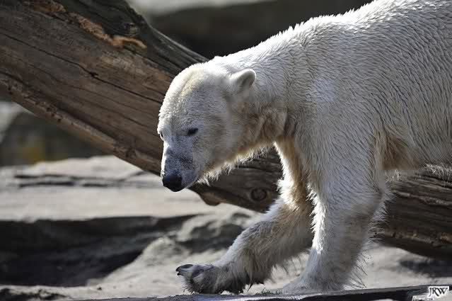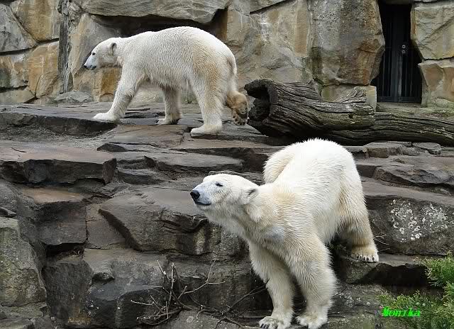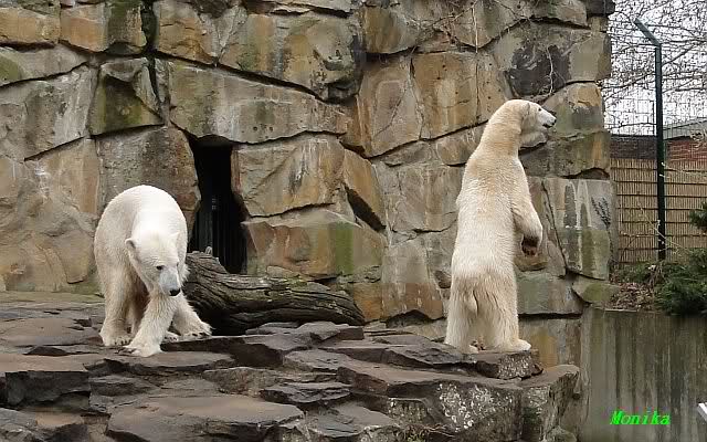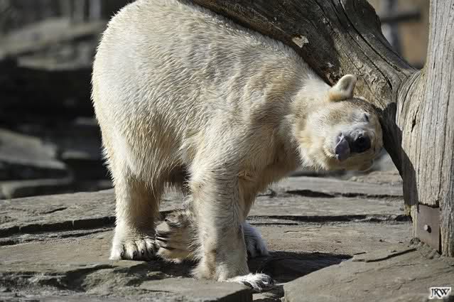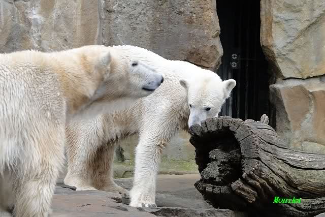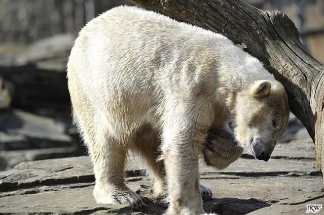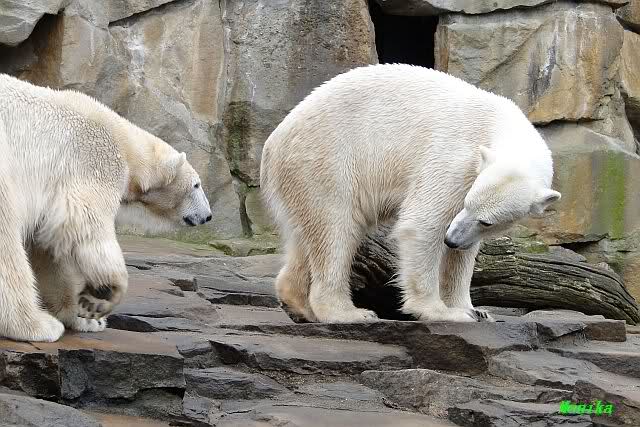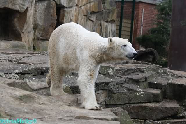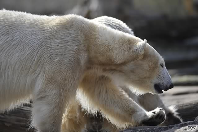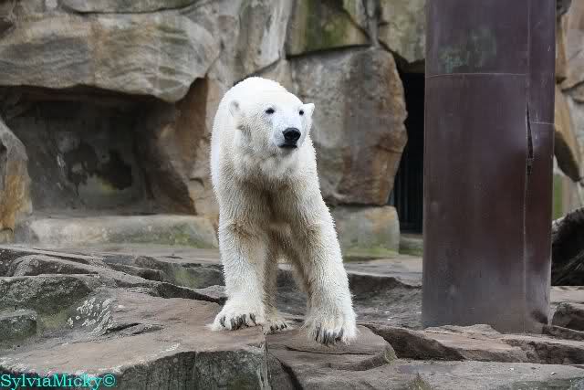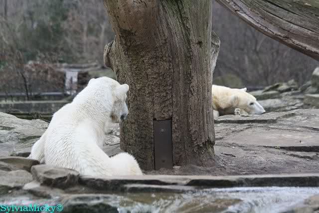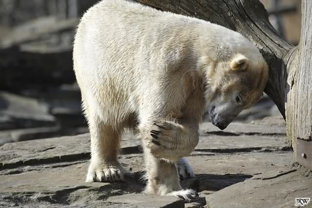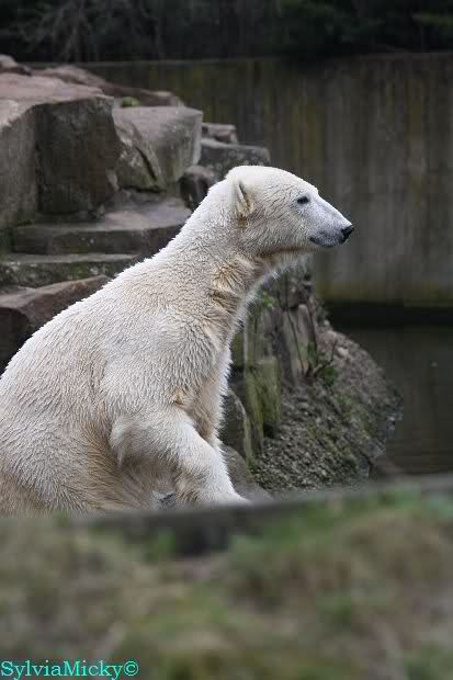 Einige Zoobesucher befürchteten, daß Knut rüber springt. Dann schwang Iglu das eine Bein über den Zaun. Es ging dann eine Stammbesucherin zu ihm hin und sagte, er solle dies unterlassen.
