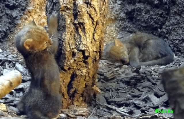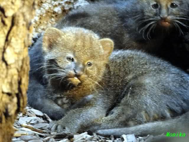 am 24.01.2011 wurden die beiden kleinen Jaguarundis geboren. (leider schlechte Lichtverhältnisse zum fotografieren)