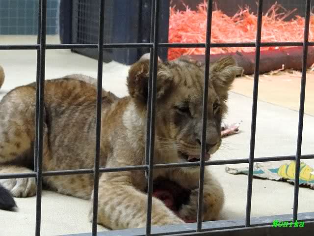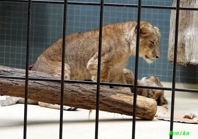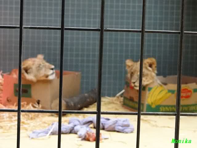 Die inzwischen mächtig gewachsenen Löwenkinder tobten gemeinsam im Käfig.