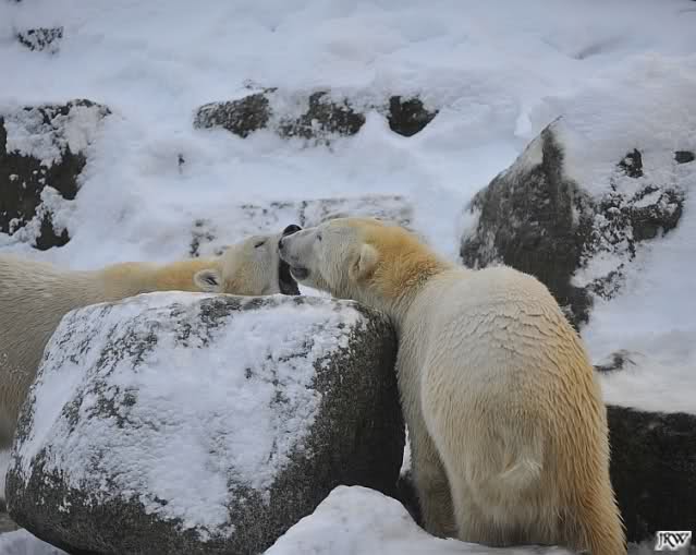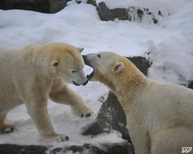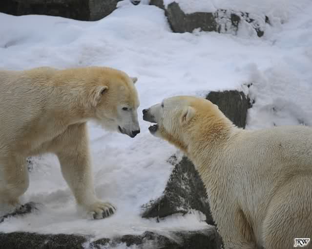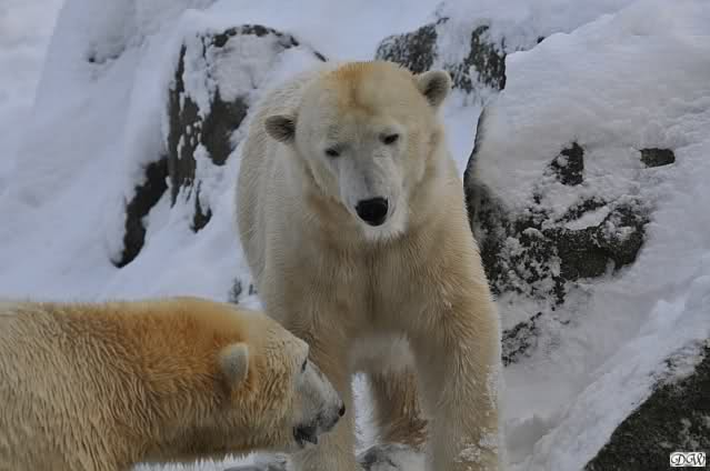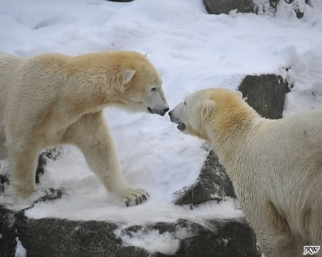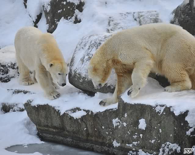 Das sind die Fotos, auf die wir so lange gewartet haben, Doris. Bei Giovanna hat es 75 Tage gedauert, jetzt ein bischen länger. Egal, die erste Eisbärenfreundschaft auf der großen Anlage scheint gefestigt. Mal sehen wie es weiter geht.