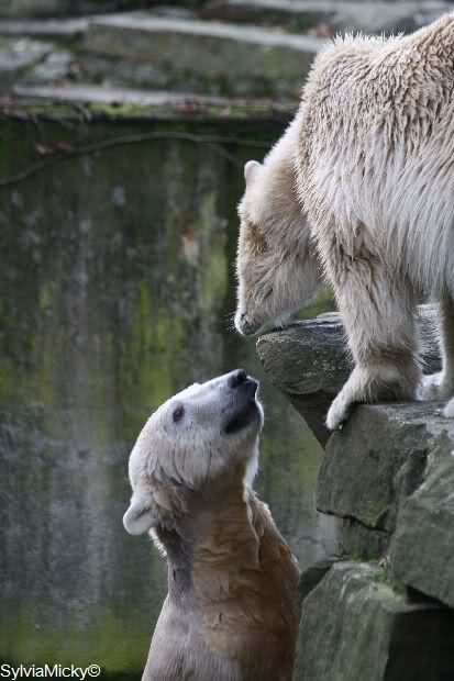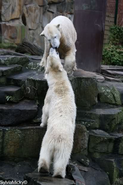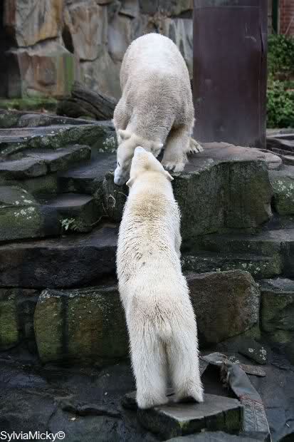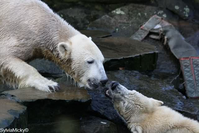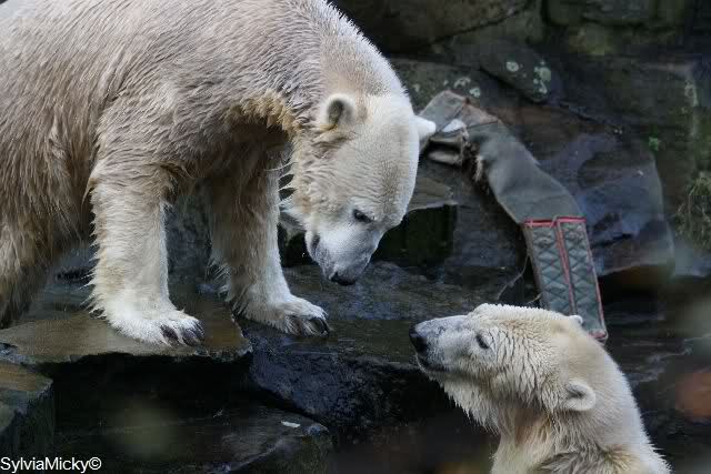 Ich habe erstmal alle neuen Fotos genossen. Einfach herrlich. Das Eis ist wohl endgültig zwischen den beiden Bärenkids gebrochen. Giovanna verdreht unserem Knut sogar die Augen . Mit den ganzen Fotos lässt sich der Feierabend noch mehr genießen. Auch danke für die Videos.