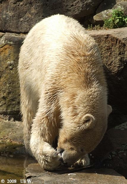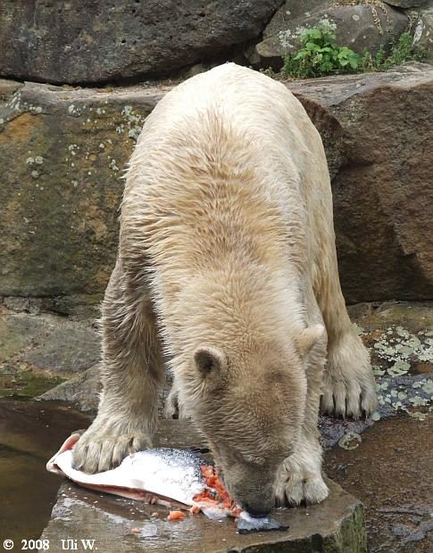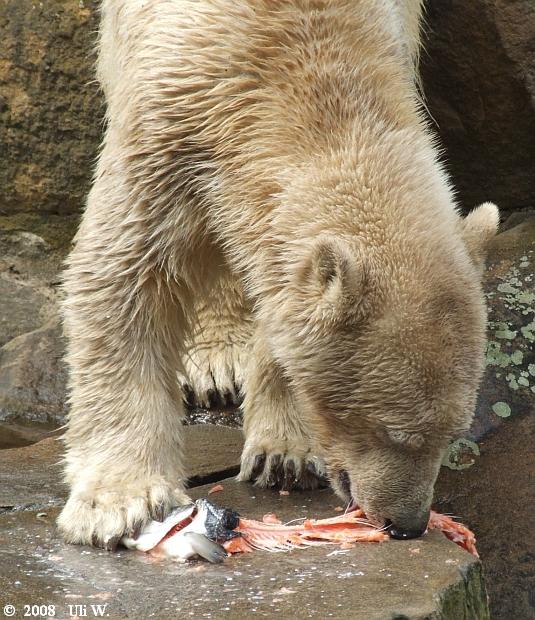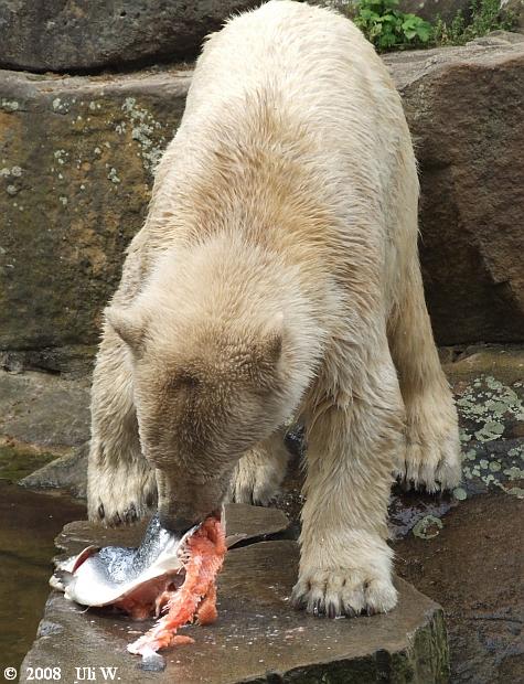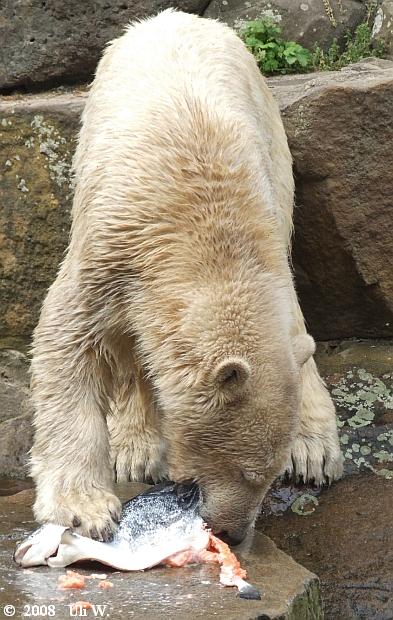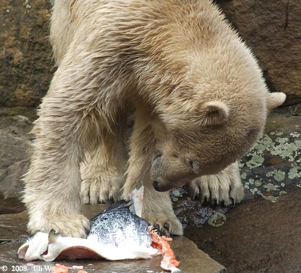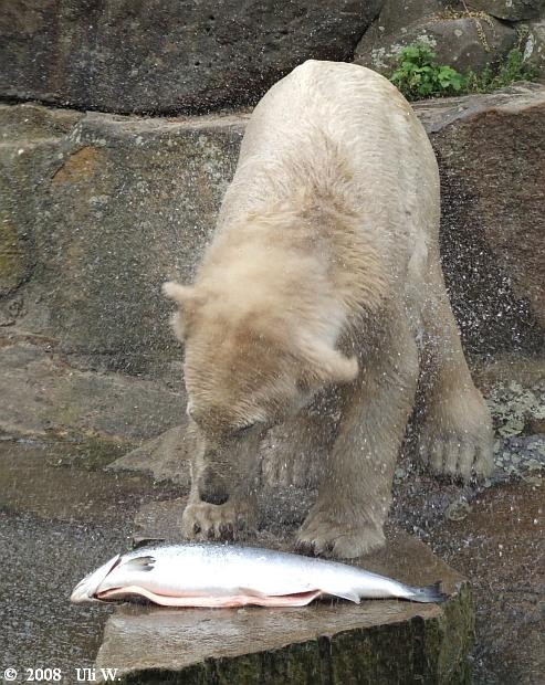 seid bedankt für eure schönen Knutbilder!!! Eins beschäftigt mich jedoch: woher bekam Knut denn den großen Lachs? Ist ihm davon schlecht geworden? Können denn Besucher die Eisbären einfach per Zuwurf füttern,oder wird das kontrolliert???