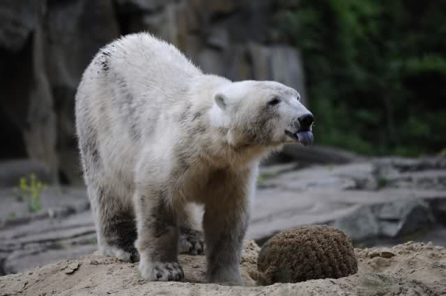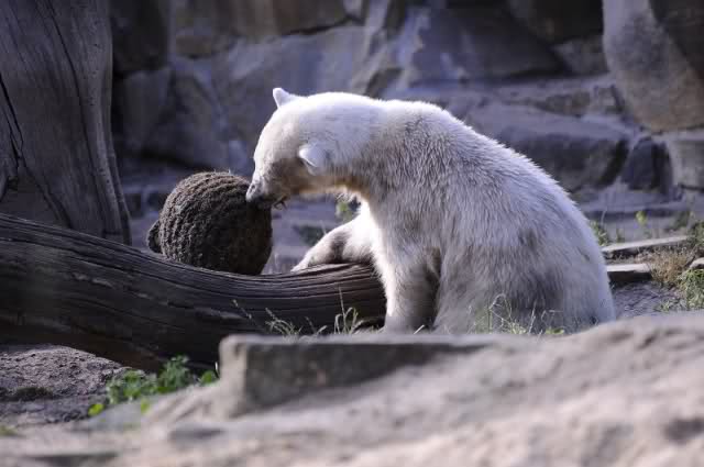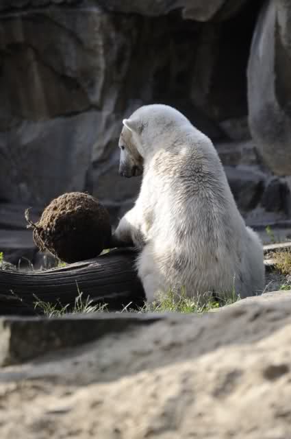 Ich blieb lange bei ihm stehen, um möglichst viel Knut aufzusaugen. Mir gelangen auch einige Fotos von mäßiger Qualität, aber mit wunderschönem Motiv.