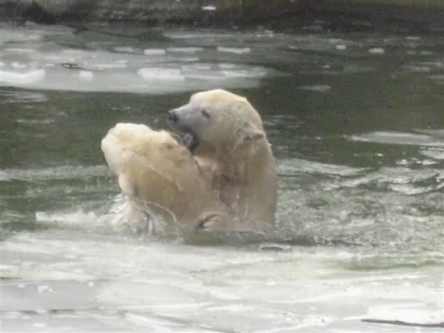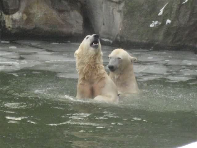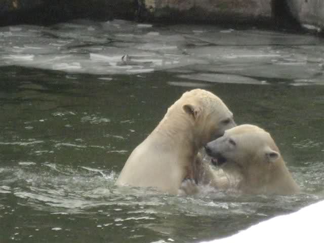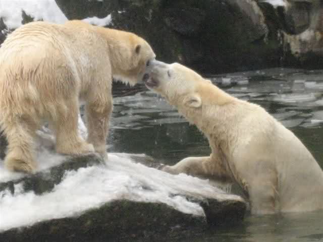 Was für ein Tag neigt sich heute dem Ende zu. Die heutigen Aufnahmen (Dank an die Knutfreundin) aus dem Zoo sind schon als sensationell zu bezeichnen. Tosca und Knut spielend im Wasser. Menschlich würden wir sagen: Mutter und Sohn toben im Wasser herum.... Aber wir sind bei den Eisbären.
