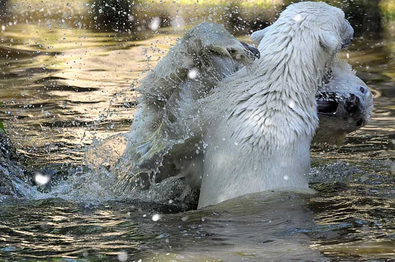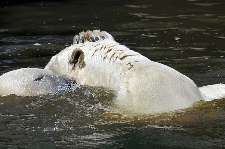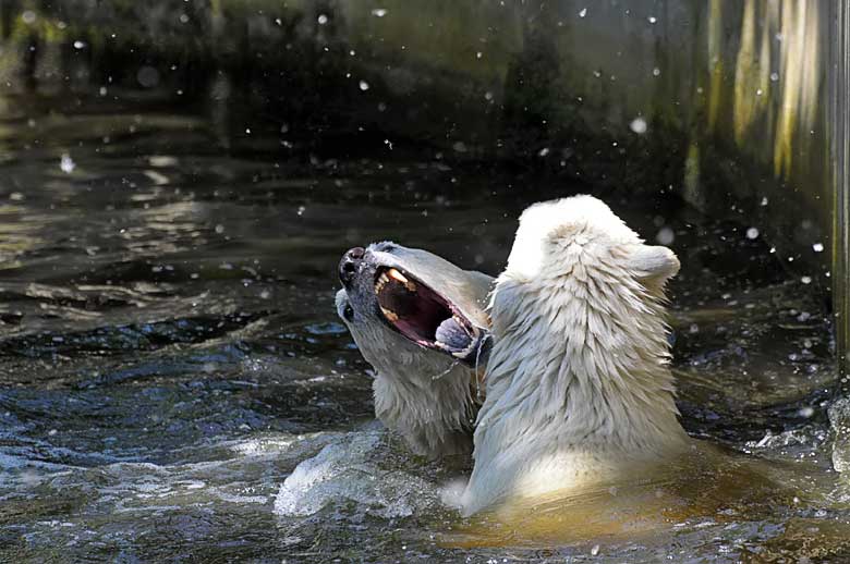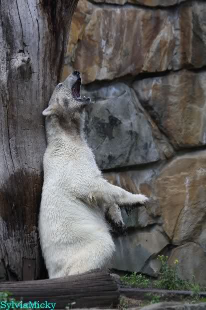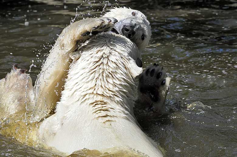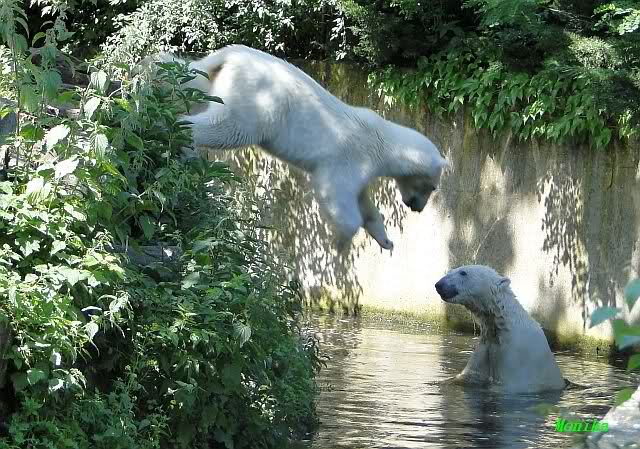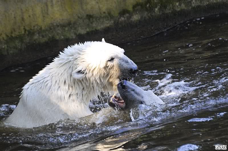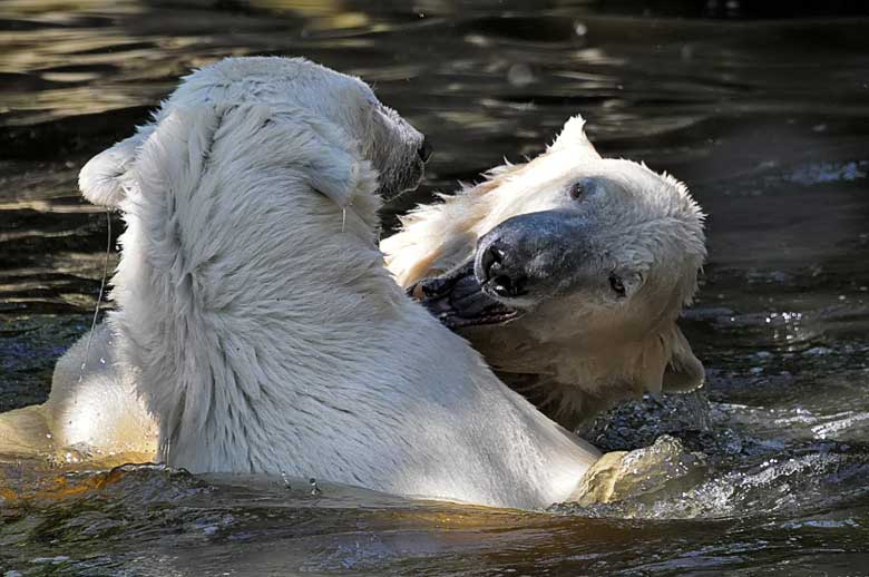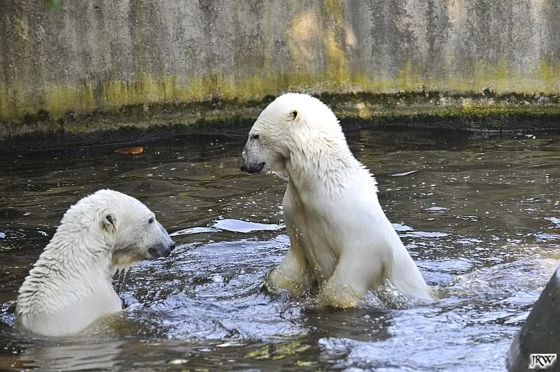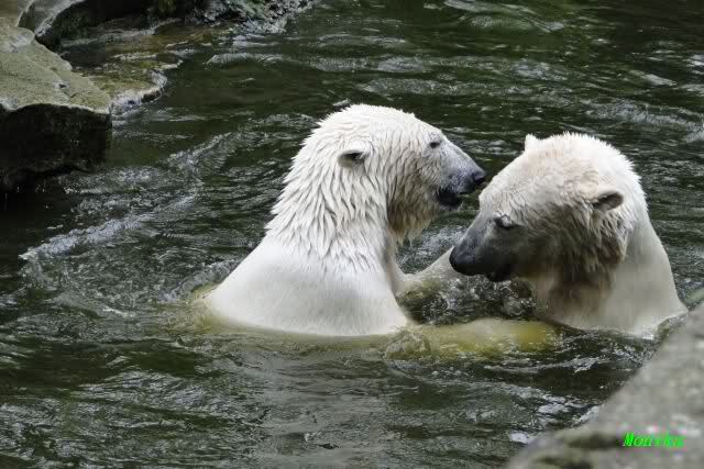 Danke, Frans, für die Wahnsinnsaufnahmen. Der Blick in das Maul eines Eisbären flößt schon Ehrfurcht ein. Um so erstaunlicher ist es, das sich Giovanna und Knut gegenseitig nicht weh tun, obwohl sie sich immer im Nacken das Anderen *festbeißen*. Aber es ist alles Spiel und Training fürs Leben.