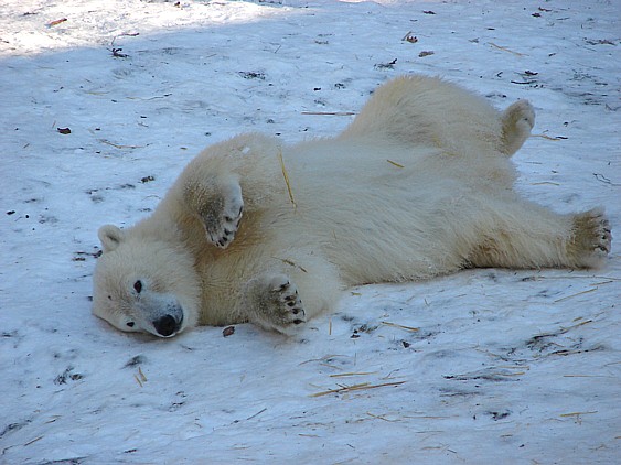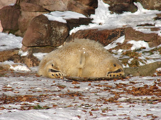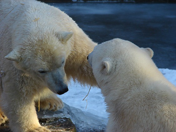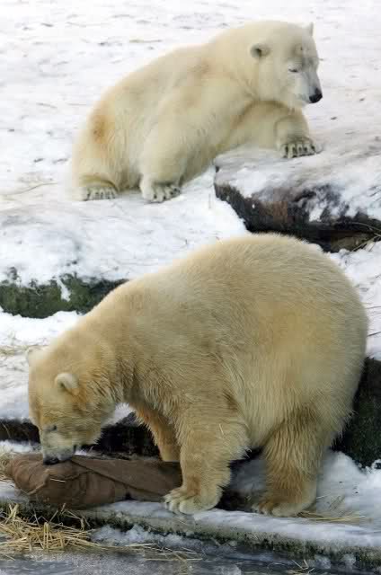 Es tut gut zu sehen, dass Flocke klar kommt.Sie ist eben doch pfiffig! Gut so. Es wäre sehr traurig, wenn der Neue ( Rasputin fällt mir auch noch schwer, bei dem Ende,welches der fand...)Flocke Schaden zufügte. Man wird sie sicher auch zum Züchten verwenden, auf kleinem Platz mit andren Eisbären(also eisbäruntypisch)halten und da muß sie sich behaupten können.