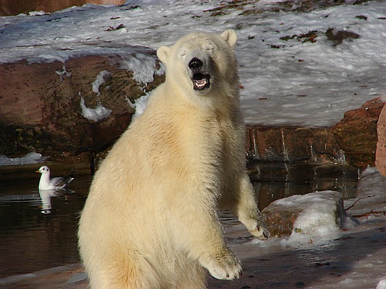 Danke Rouva, dass Du in den Zoo gegangen bist. Sehr schöne Bilder, wie immer, hast Du mitgebracht und der ausführliche Bericht ist auch interessant. Es kann wirklich gut sein, dass sich Flocke erst an die Zweisamkeit gewöhnen muss. Rasputin hatte ja immer seiner Bruder bei sich. Eisbärbilder können wir unendlich viele vertragen ...