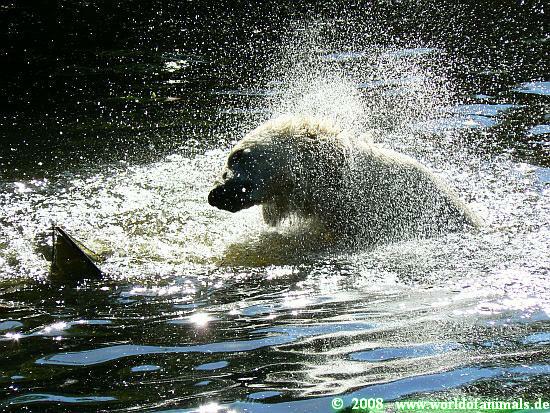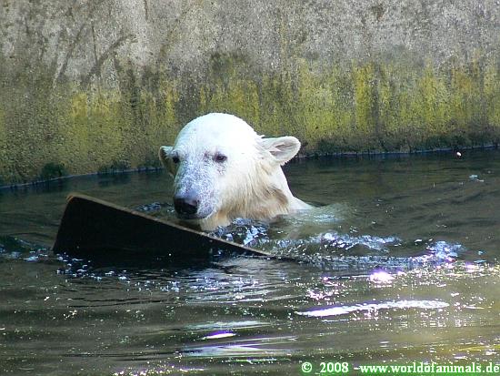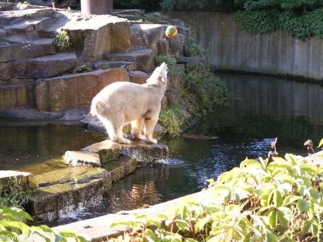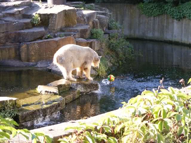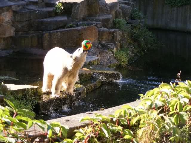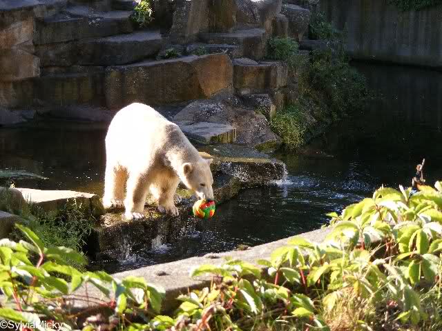 Hey, was hat Knut denn für einen schönen bunten Ball bekommen ? Ist ja ein echter Farbtupfer auf der Anlage.
