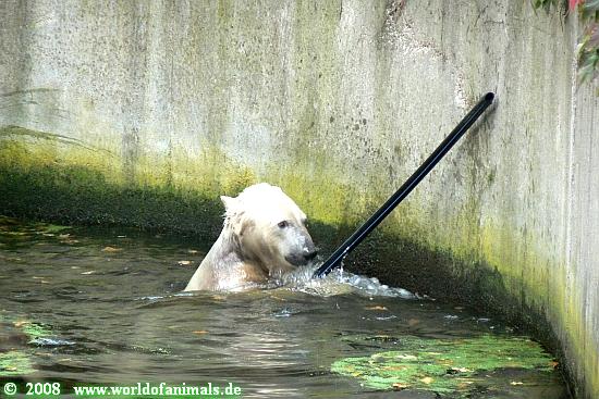Apart from this we do apply a lot of enrichment for all polar bears in all three enclosures. This can be toys, frozen blocks of ice with food, branches, scattered feeding. Very rare they have nothing to play with, which is in this case enrichment too.
