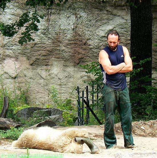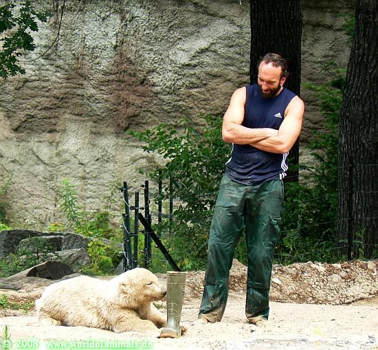 Schön, dass auch die Tierpfleger mal geneckt werden von den Jungtieren. Herr Zahmel ist ja ein guter Lehrmeister, der wird ihn schon noch zähmen