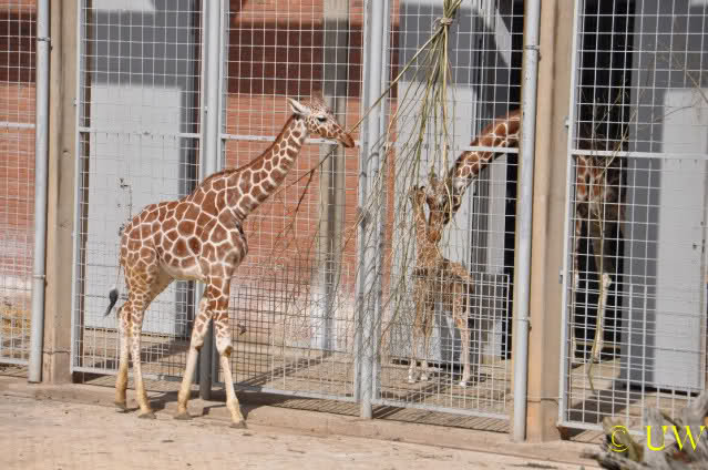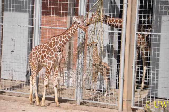 ... dafür aber die kleine Giraffe Carlo, die erst am nächsten Tag ganz ins Freie durfte, da war dann auch gleich Pressetermin