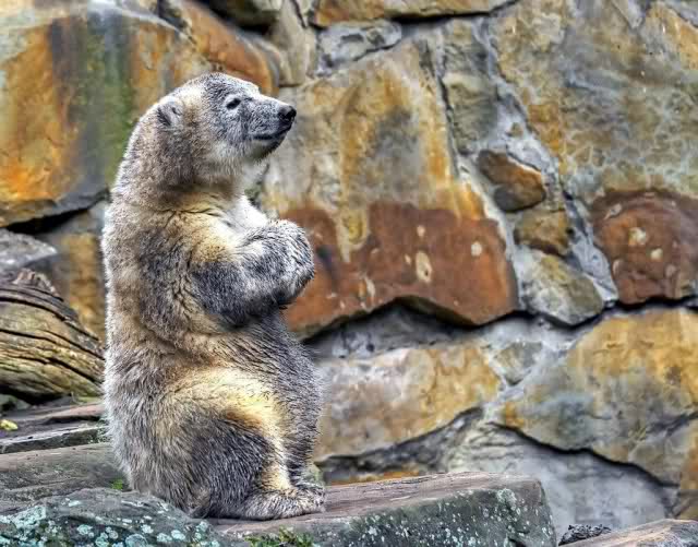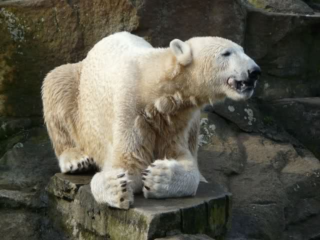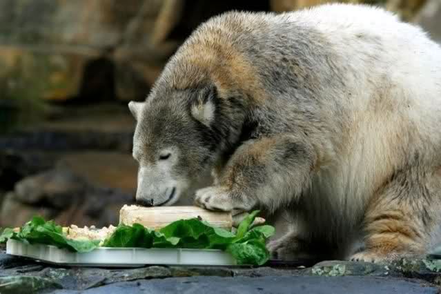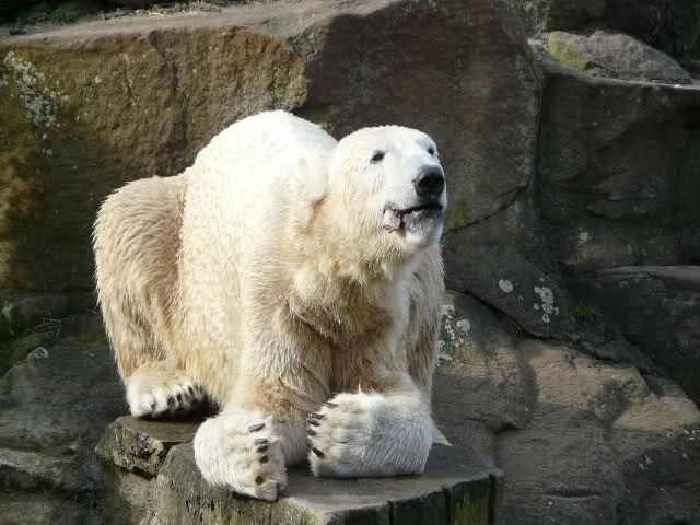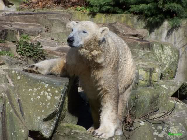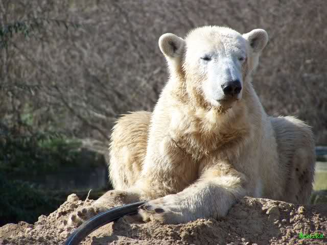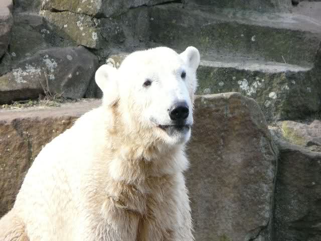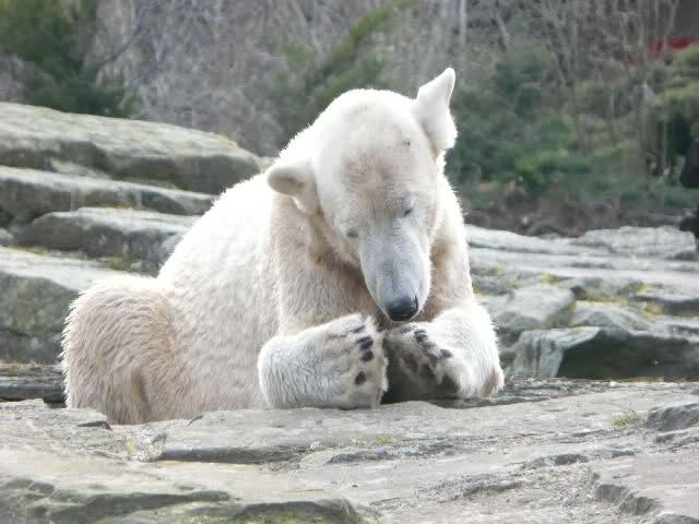 Guten Tag an alle Knut Freunde. Bevor es gleich wieder in den Zoo geht, trotz des miesen Wetters, noch einen Gruß aus Knut City, und ich wünsche Allen einen schönen Sonntag Nachmittag.